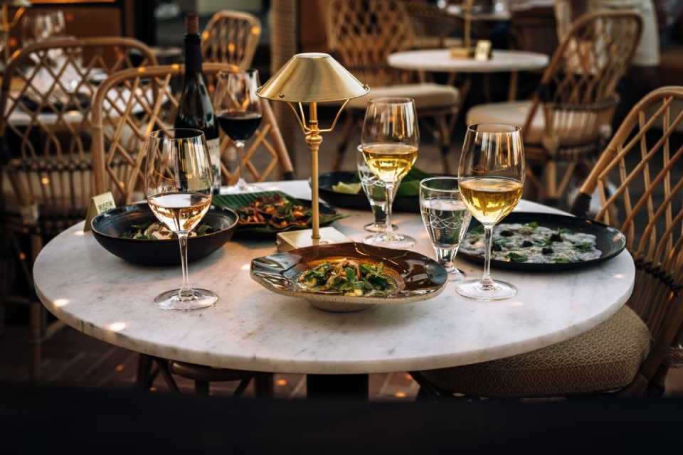 Dezenas de plantas tropicais desenham circuitos pelos patamares do espaço, solução que permitiu criar zonas de mesas com diferentes ambientes, mais ou menos privados. Do bar central saem, por sua vez, cocktails inspirados em Portugal, Brasil, México, Peru e Cuba, como o Graviola Rosada (vodka com frutas como a graviola e sumo de romã), o Dame Otro (base de mezcal infusionado com notas de abacaxi, pinha de agave e coco), e o Monamour (com gengibre, vodka,, lima, espuma floral e taijin, uma mistura de pimentas e pimentões).