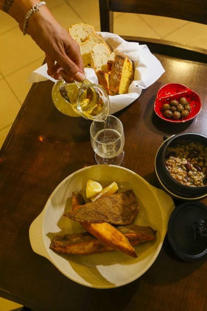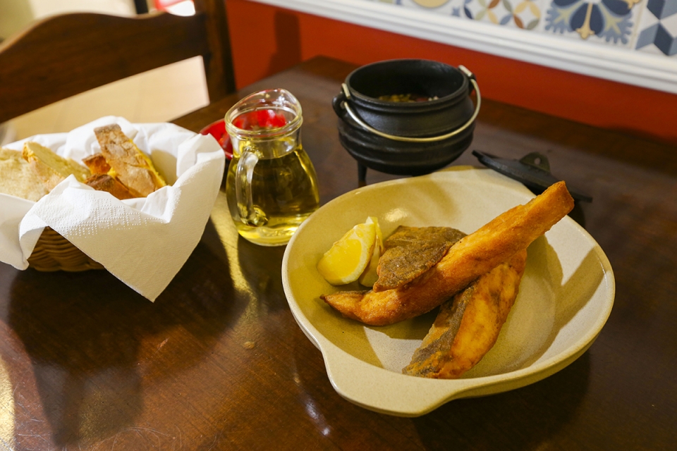 Croquetes de cozido à portuguesa, ovos rotos com farinheira, pica-pau e camarão salteado são outras das opções de petiscos, dos quais Afonso recomenda pedir dois e conjugar com a partilha de um prato principal, na conta ideal para duas pessoas. Já nos principais, saem muito o chambão (vaca) estufado e o polvo à lagareiro. As sobremesas são diárias e tradicionais, como leite-creme ou mousse de chocolate.