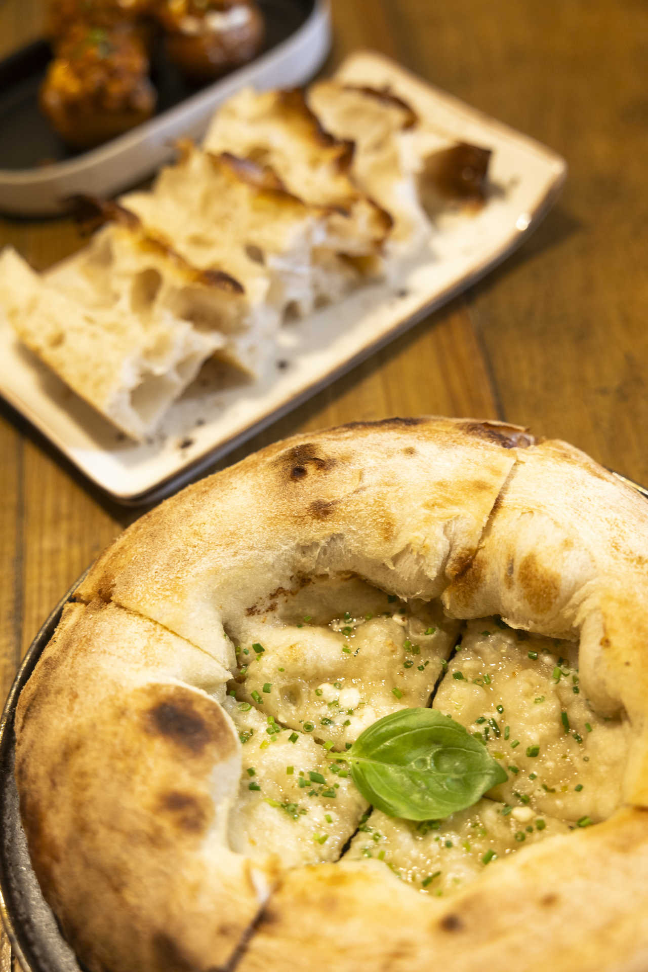 Tanto as pastas como os risotos estão disponíveis nos tamanhos pequeno e grande, para facilitar a partilha. Já as pizas – com massa de fermentação lenta, entre 24 e 48 horas – são feitas pelo pizzaiolo Victor Masseran. Entre as mais pedidas estão a picante Diavola, com pepperoni, e a de quatro queijos e trufa. Neste e noutros pratos, a trufa pode ser reforçada a pedido do cliente, laminada diante dele a troco de 5,5 euros por grama. E o rebordo das pizas mergulhado em molho pesto, disponível em três versões: pimentos, pistacho ou manjericão roxo.