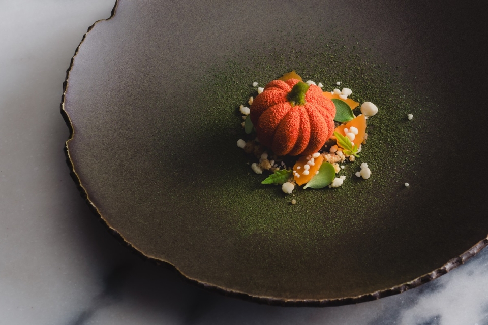 O tamboril, com toque fumado do carvão, vem com fígado do mesmo, aipo em três texturas (lactofermentado, puré e cru) e jus feito das cabeças e aparas do peixe, ao longo de 72 horas de confeção; já o momento da abóbora, composto da mesma, queijo de cabra, pinhões fermentados, marzipan, crumble de pecorino e chocolate branco, é outro dos destaques.