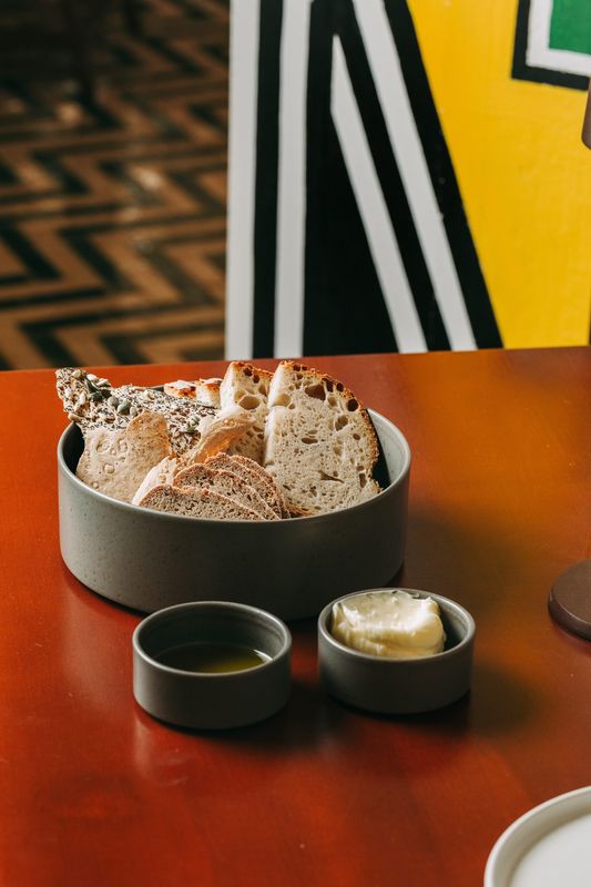 - Pão alentejano, broa de centeio, manteiga caseira e azeite extra virgem. (Fotografia: DR)