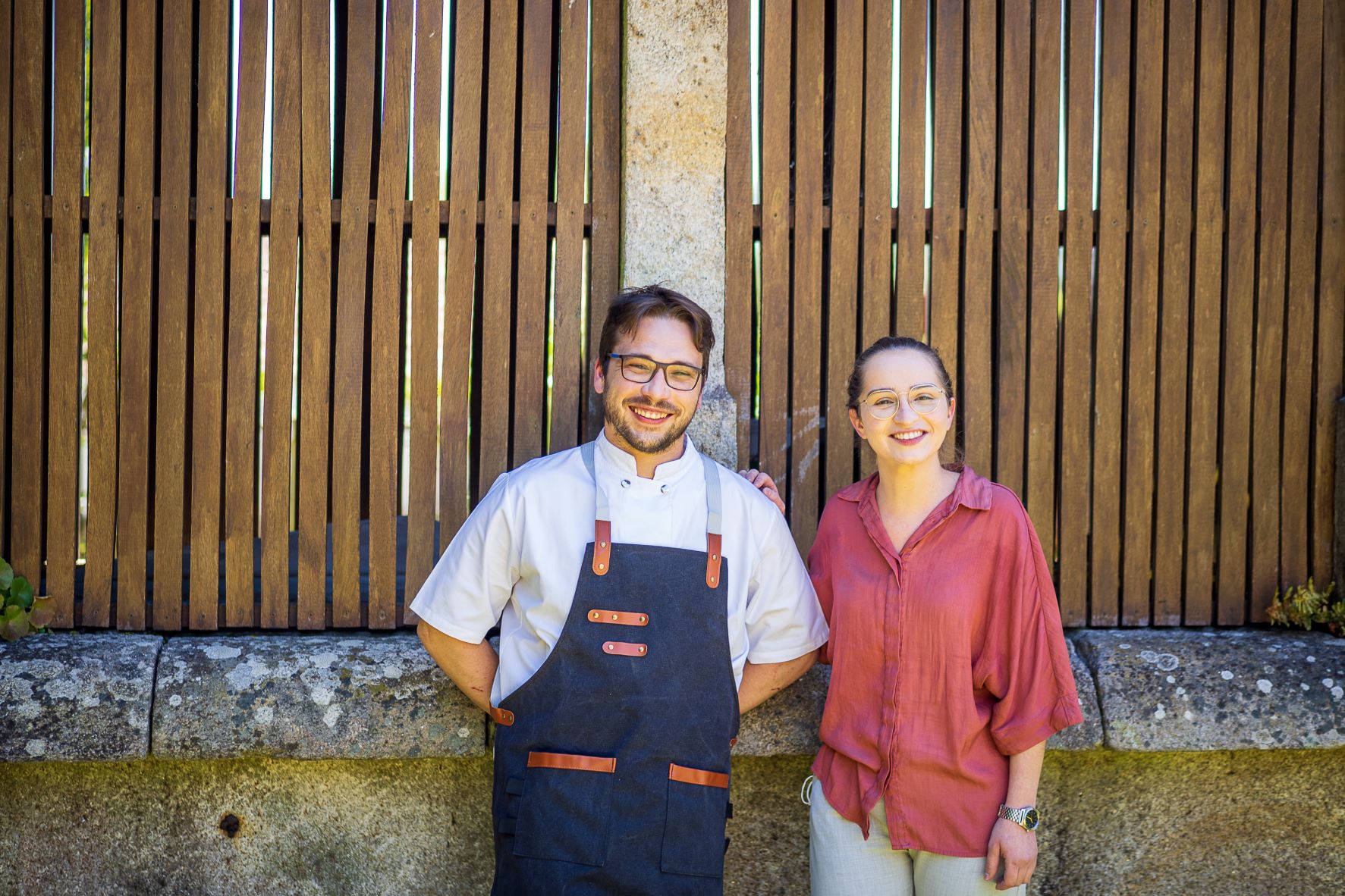 Por ser um dos temperos essenciais da cozinha mediterrânica, Ana Afonso e André Campelo acharam apropriado chamar Louro ao restaurante gastronómico que abriram na aldeia ribeirinha de Torre, em Viana do Castelo. Fica afastado do centro urbano – era intenção da dupla criar um lugar “onde se fosse de propósito para comer” – no recato de uma casa ajardinada, com uma sala elegante, de tons neutros, relvado com um espigueiro e um agradável alpendre. Os dois jovens conheceram-se na Escola de Hotelaria e Turismo de Viana, e seguiram caminhos diferentes, com passagens pelo estrangeiro, até voltarem a cruzar-se, anos depois, e começarem a pensar num regresso.
