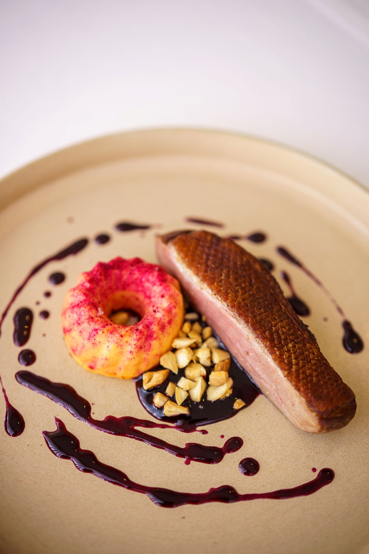 Uma das propostas mais populares, e que evidencia a inspiração na gastronomia local é o Manco à vianense. É “o nome que aqui se dá às sapateiras que vêm sem uma perna”, explica Ana. O recheio saboroso de sapateira e broa é servido com ovo a baixa temperatura, pickles caseiros e azeitona, e ainda um molho feito com a carcaça e outros excedentes da sapateira, que ilustra a preocupação de Ana e André em diminuir o desperdício no restaurante.