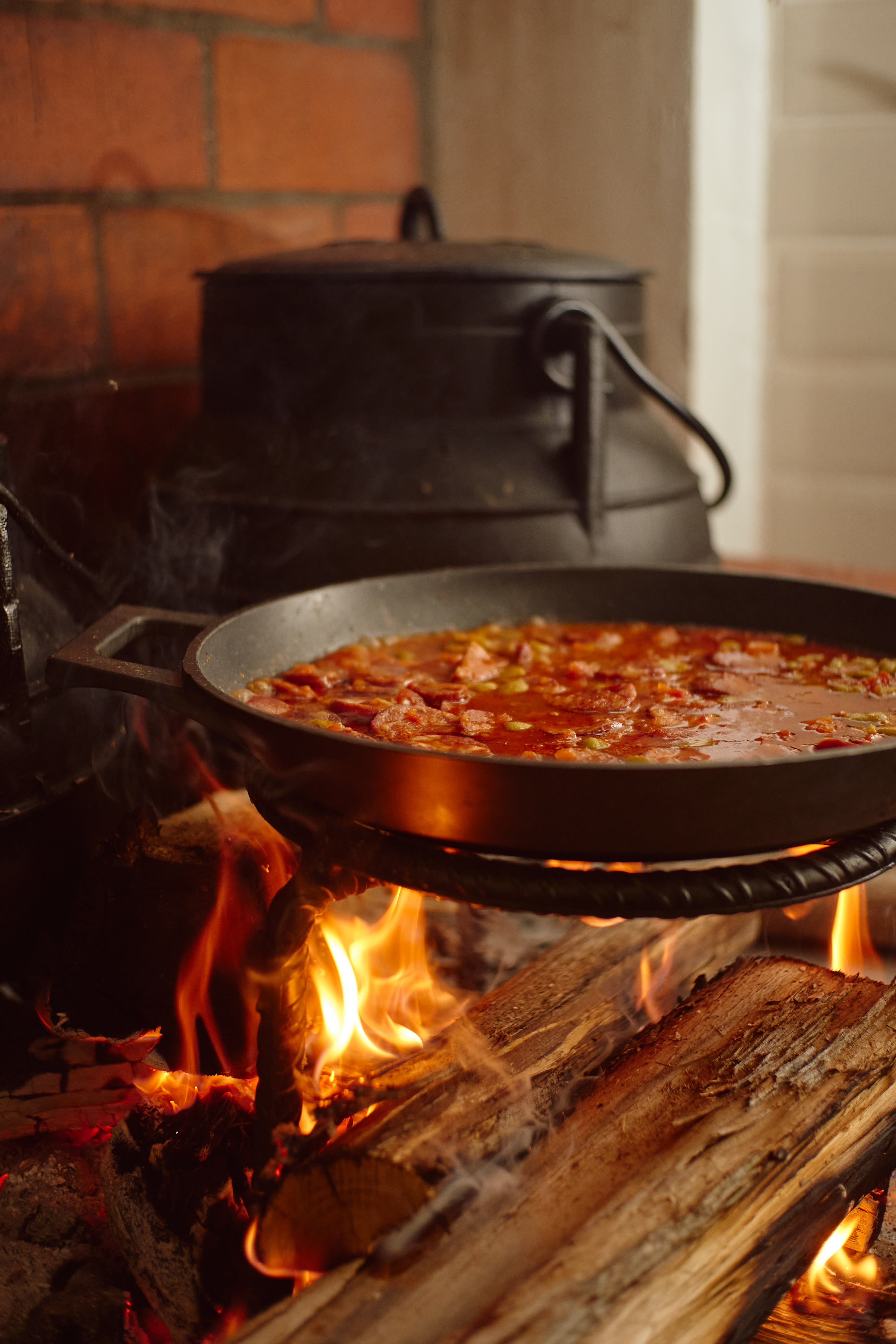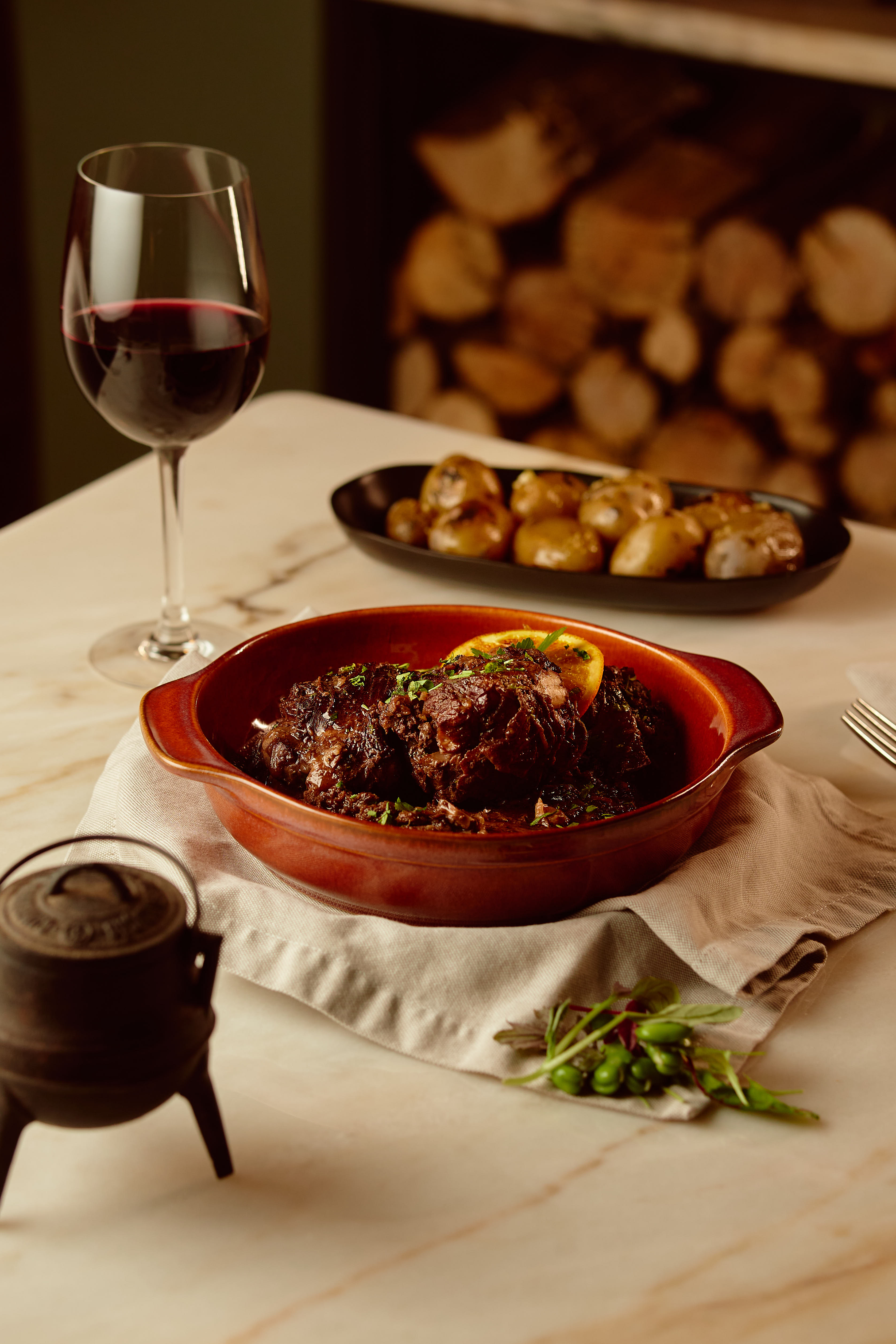 No Ólume, e como o nome sugere, a comida é preferencialmente confecionada em lume de lenha. Do pote de ferro fundido de três pernas sai um dos best-sellers da casa, o javali, feito à moda transmontana, de Macedo de Cavaleiros. Do javali, aqui só se utiliza a parte da costela. A carne é marinada 24 horas com vinho, cravinho e pimenta. Chega à mesa acompanhada de batata a murro e grelos cozidos com azeite e alho. “É comida transmontana no seu melhor e já foi aprovada pela Confraria do Javali de Macedo de Macedo de Cavaleiros”, diz Pedro Maia, chef do espaço e empresário de restauração, que com este já soma seis restaurantes, entre eles o Coreto, a Mercearia do Bacalhau e a Biferia.
