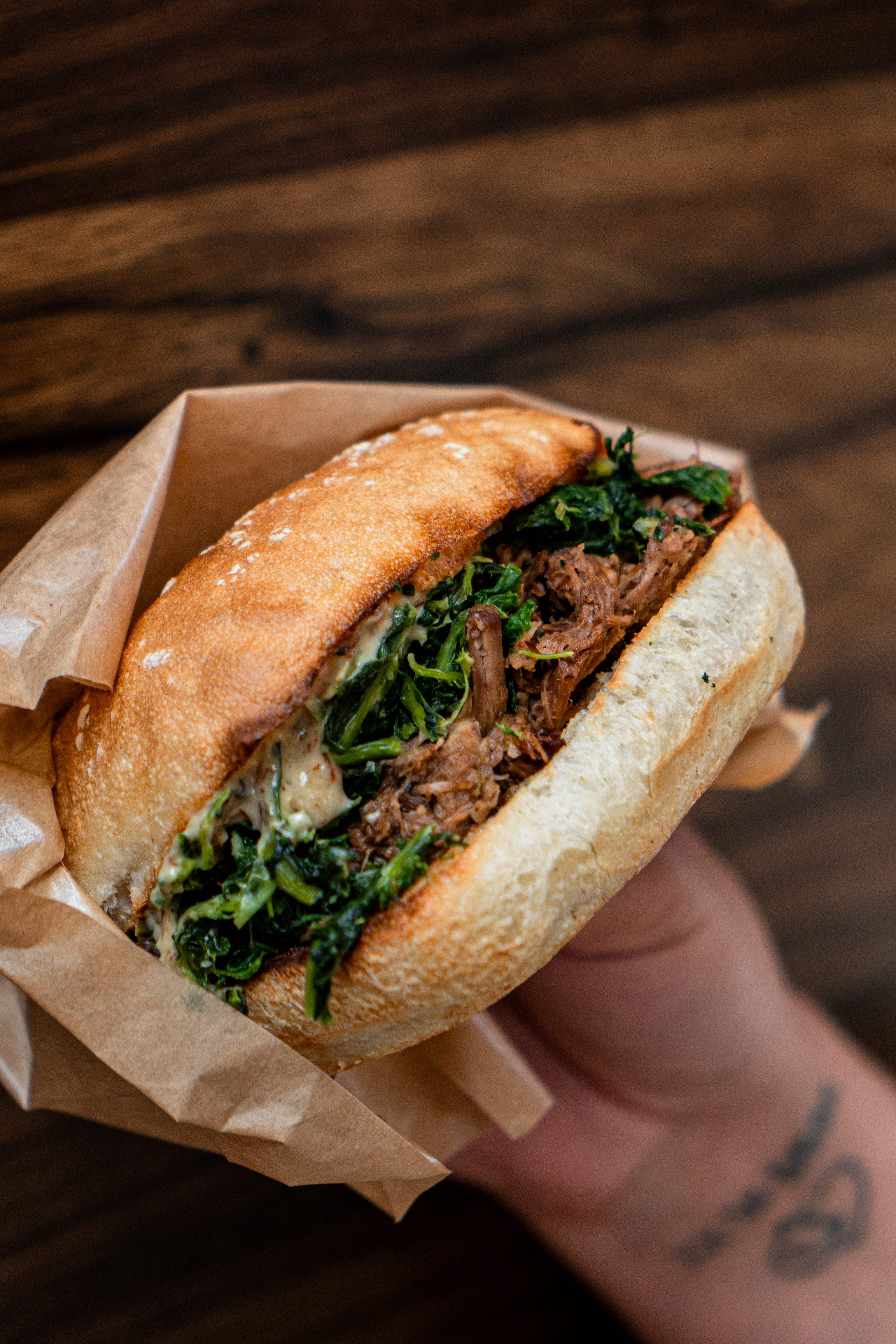 A marca, fundada em 2018, já tinha dois espaços no Porto – Campus São João e Mercado do Bom Sucesso -, e no ano passado, Tiago levou o restaurante especializado em sandes para a Avenida da República, em Matosinhos. A sala é pequena, senta cerca de 12 pessoas, mas o serviço é rápido – ao contrário do processo de confeção das carnes que recheiam as sanduíches, cozinhadas lentamente durante várias horas, para apurar sabores e suavizar a textura -, dando resposta à procura de almoços práticos e saborosos.