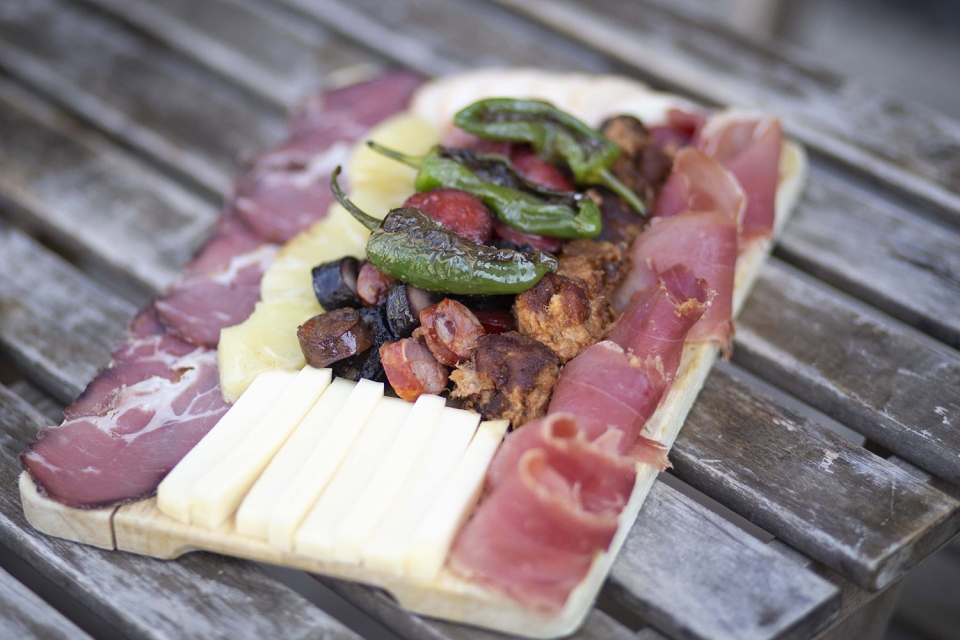 As tábuas mista e as sanduíches em pão de Padronelo são duas das especialidades da casa, servidas com vinho da casa.