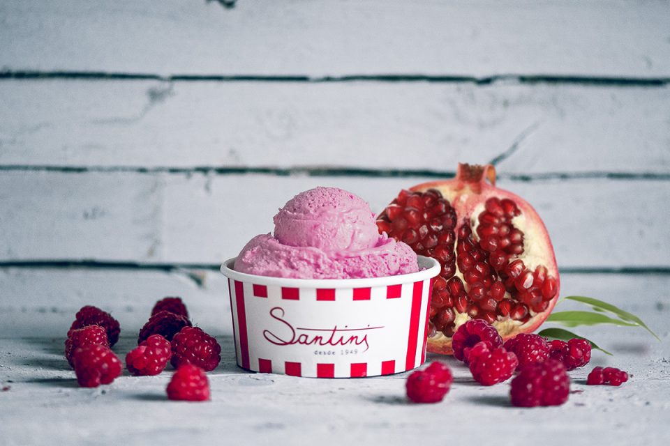 Entre as novidades que a Santini preparou para a festa está o Sabor de Gelado do Manel, de edição limitada, que combina romã e framboesa. Está disponível no próximo fim de semana (25 de setembro), e deve o nome ao elemento mais novo da família a seguir as pisadas do pai, Eduardo Santini.