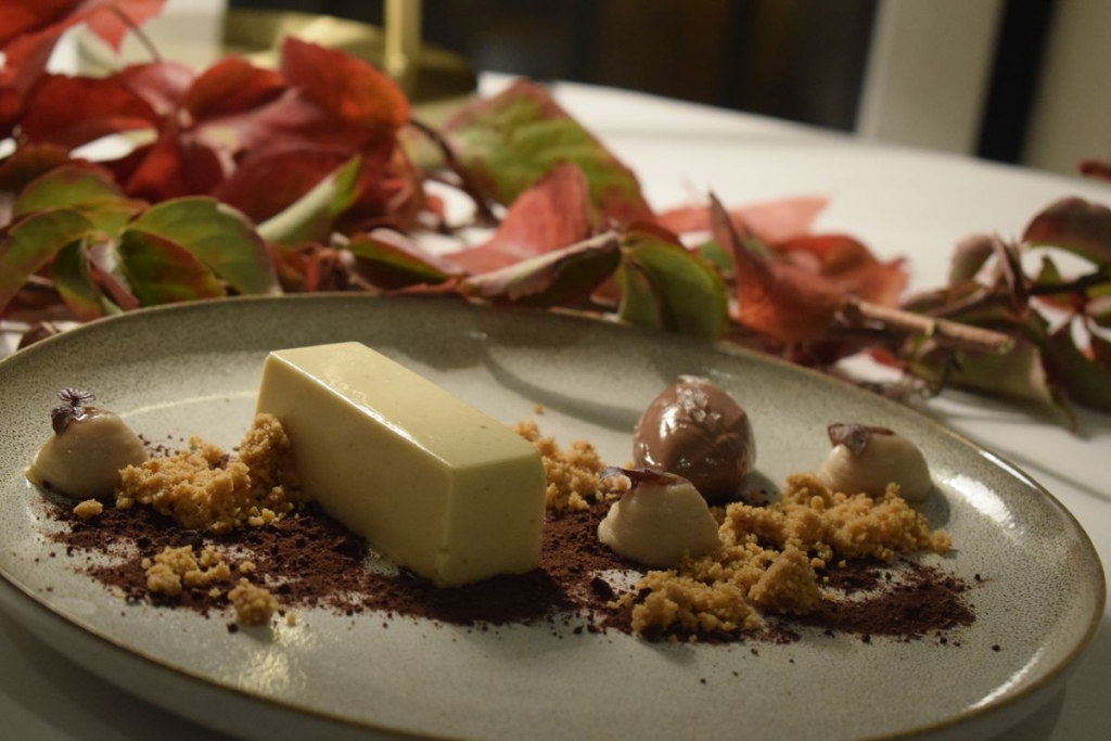 O ponto alto do menu, para os amantes de carne, é a presa ibérica fumada durante 12 horas e apresentada com uma fatia de papada, texturas de abóbora, nabo laminado, couve kalel, molho demi glace de pimenta preta e pimenta szechuan. Já a pré-sobremesa é um hino ao outono, apresentando diospiro em diferentes texturas com um crocante de laranja e canela. A segunda sobremesa conjuga castanha, chocolate 70%, jeropiga e avelã.