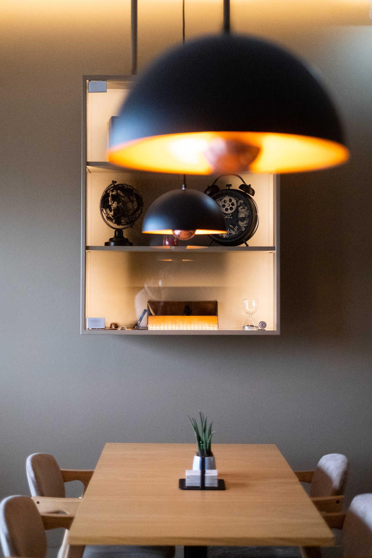 O cuidado com a apresentação transparece nos pratos, bem como no resto – dos uniformes da equipa à sala, de ambiente confortável, com cadeiras de um amarelo enérgico e objetos em exposição. Alguns deles foram parar às mãos de Filipe devido à sua atividade profissional: telefones antigos e uma televisão são exemplos de peças obtidas em mudanças de residência. Das prateleiras e vitrinas espreitam ainda relógios, globos, malas e passaportes, numa alusão ao aeroporto, que fica próximo. Ainda mais perto passa o Caminho de Santiago, e os peregrinos – como ele já foi – podem carimbar ali a sua credencial.