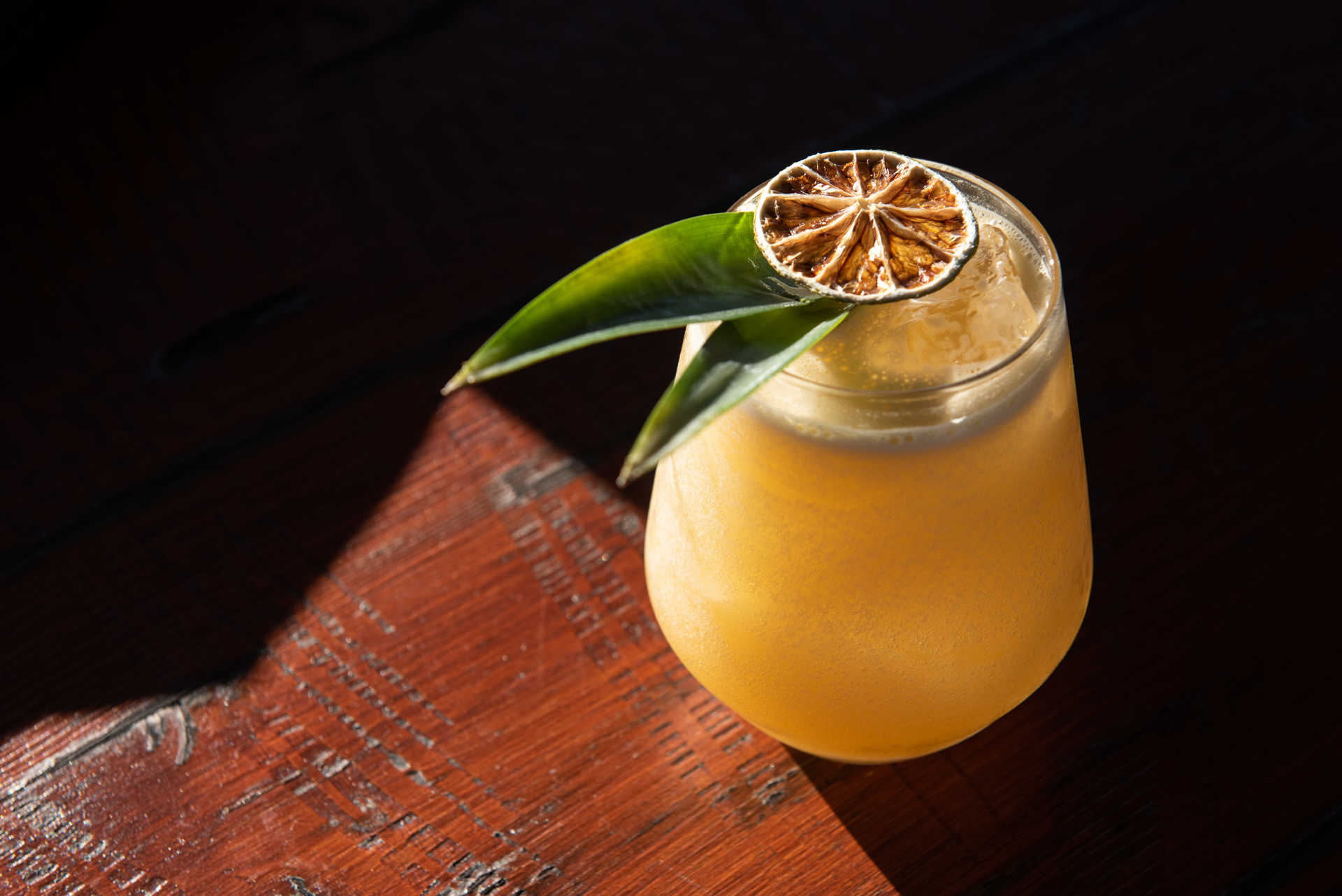 - O espaço oferece vistas amplas sobre a cidade. À direita, o cocktail King Elvis. (Fotografias de André Rolo/GI)