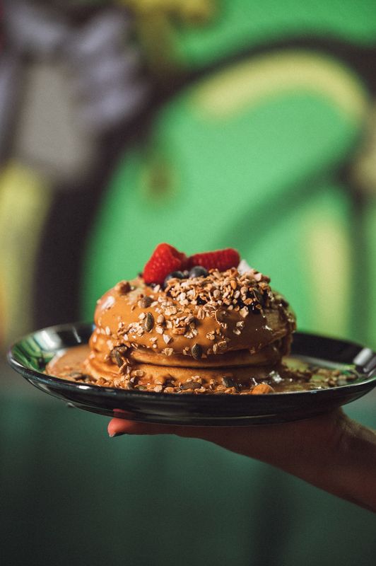 O menu fechado de brunch (panquecas, ovos à escolha, sumo, bebida quente e iogurte com granola caseira; tudo com opção vegan) custa 16 euros e é uma boa introdução à carta, que reúne os best-sellers dos espaços anteriores. Há french toast, sanduíche de focaccia com abacate, bacon, queijo e ovo estrelado e a tosta Nicolau (pão com abacate fatiado, azeite e flor de sal). Nas novidades, listam-se os ovos com espargos e presunto e os cinnamon rolls caseiros; e há panquecas para todos os gostos.
