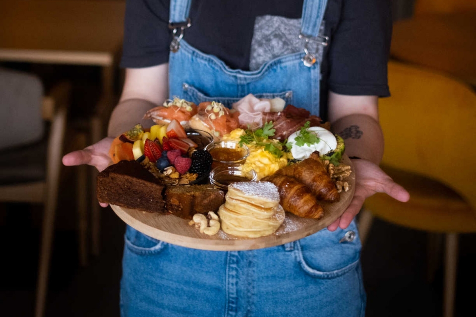Outra opção é a tábua de partilha, pensada para duas pessoas, que engloba iogurte com granola, croissants, fatias de bolo, abacate, ovo escalfado, ovos mexidos, bacon, salmão fumado, mini panquecas, frutos secos e mais. Para acompanhar há sumos, smoothies, infusões, cocktails, vinhos e cervejas, entre outras bebidas. Para saborear, sem pressa, nas mesas interiores, no balcão voltado para a rua ou na esplanada.