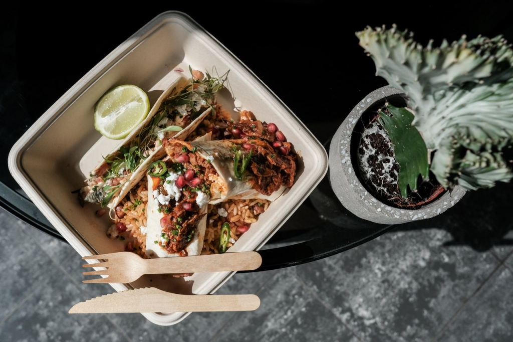 Nuno dá a volta ao mundo todas as semanas, através do menu walk in, disponível de sexta a domingo. Paralelamente, mantém opções mais conservadoras ou tradicionalmente portuguesas. Podem ser pratos regionais, como a francesinha – que é um êxito – ou fusões: a tatin de maçã de Alcobaça com creme chantilly e caramelo salgado, que convive bem na ementa com um cheesecake no forno à Nova Iorque, com morangos macerados. Tudo é entregue em embalagens feitas de “plástico 100% reciclado”, numa preocupação sustentável que acompanha Nuno Gonçalves desde a infância. E que ali faz todo o sentido, rodeado de campos onde ainda se cultivam todos os legumes, frutas e pastos.