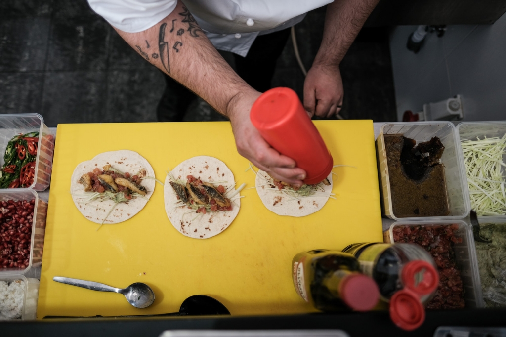 Em Colmeias, desde 9 de outubro (quando fez 36 anos) que coloca o mesmo empenho em cada ementa, em cada prato. No dia em que abriu a sua cozinha à Evasões, o ceviche de robalo com molho de lima, coentros, manga, abacate e pepino com pimento vermelho era a entrada de uma “explosão de sabores”, na semana do México: “enchiladas rojas” de cordeiro assado com arroz de pimentos e feijão, ou tacos de dourada com “pico de gallo”, guacamole e natas azedas. Para rematar, os tradicionais churros mexicanos com doce de leite e molho de chocolate.