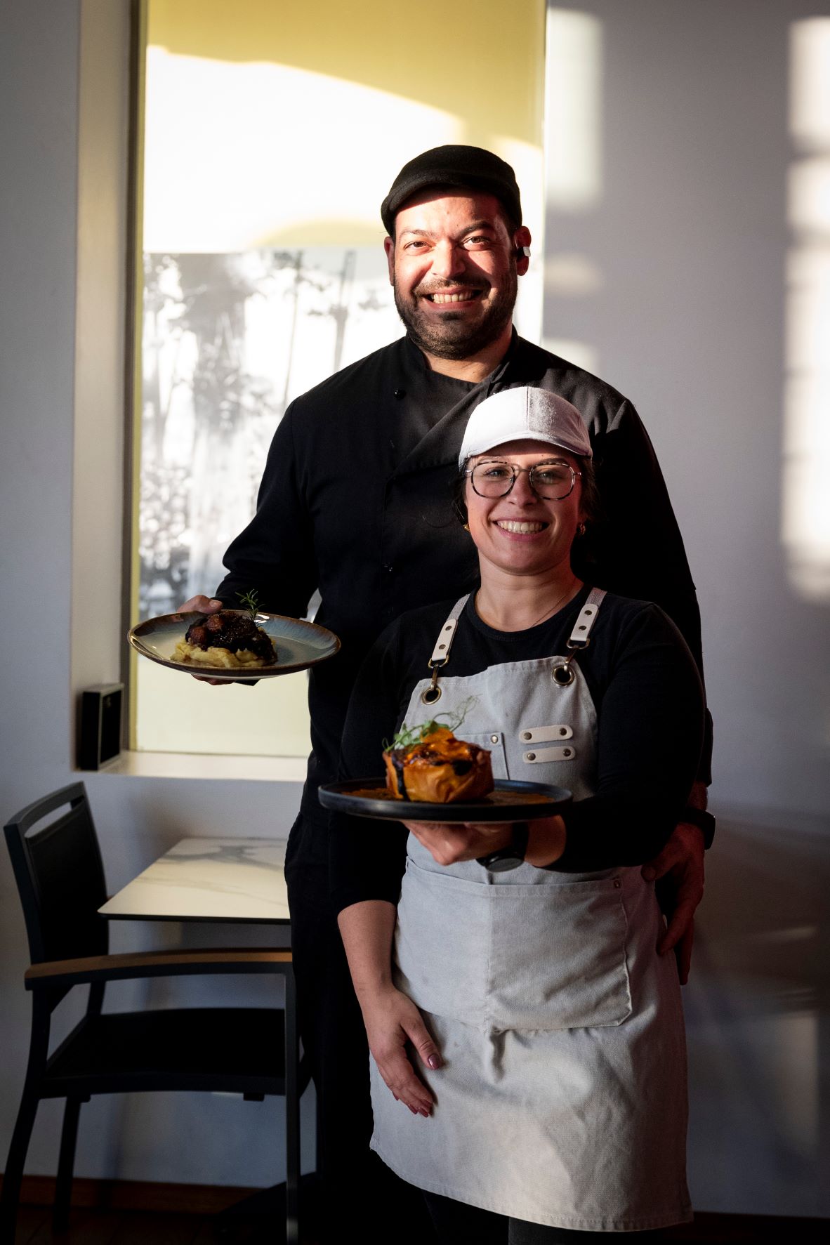 Telma Sousa e Luís Tavares trabalhavam em restauração no centro do Porto quando a pandemia os levou a repensar o futuro. Queriam um espaço próprio, fora das grandes cidades, onde pudessem pôr em prática as suas ideias. “Os dois gostamos muito de estar à mesa e da cozinha tradicional portuguesa. Faz-nos lembrar a nossa infância. E esse foi sempre o nosso foco, mas queríamos também dar um toque contemporâneo e juntar as nossas recriações”, afirma Telma.