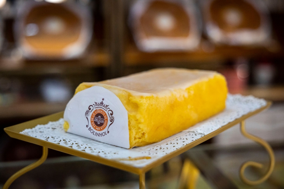 Lá dentro, surgem fotografias a preto e branco e demais documentos, lado a lado com a joia da coroa, de formato retangular: o “pão-de-ló coberto de Vizella – Delícia”, conhecido, popularmente, como bolinhol, explica Pedro Tiago. O responsável pelo negócio, que foi passando de geração em geração, conta que se manteve a receita e o método de fabrico daquele doce, criado por Joaquina Pedrosa da Silva.