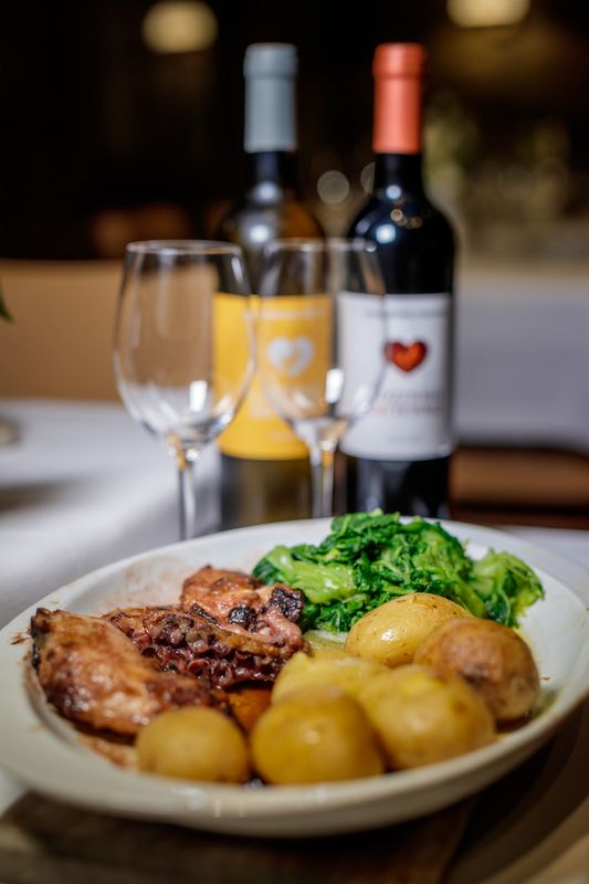 Teresa também recria “sabores esquecidos”, como os rojões feitos à moda antiga. “São confitados na banha, não são fritos”, realça, e exclusivos do inverno. Também há assados no forno a lenha, servidos habitualmente aos domingos, que é o dia deles, mas não em exclusivo: o cabrito, a vitela, o galo na caçoila. Tudo “feito com muito carinho, muito amor e com atendimento muito familiar, que é apanágio destas casas nortenhas”, resume Teresa.
