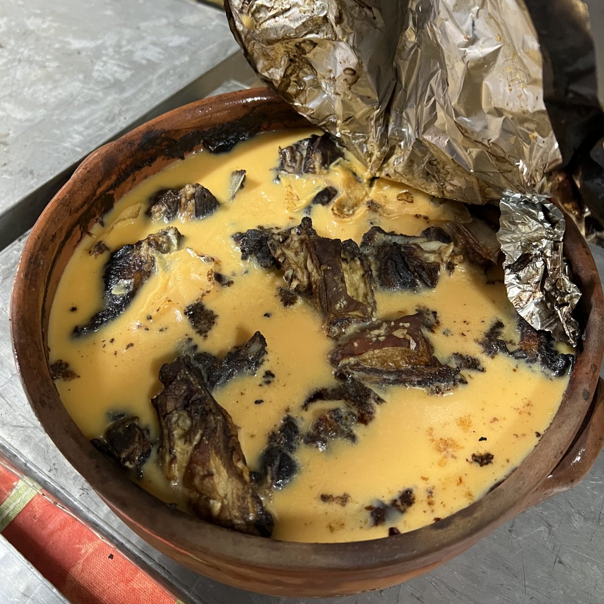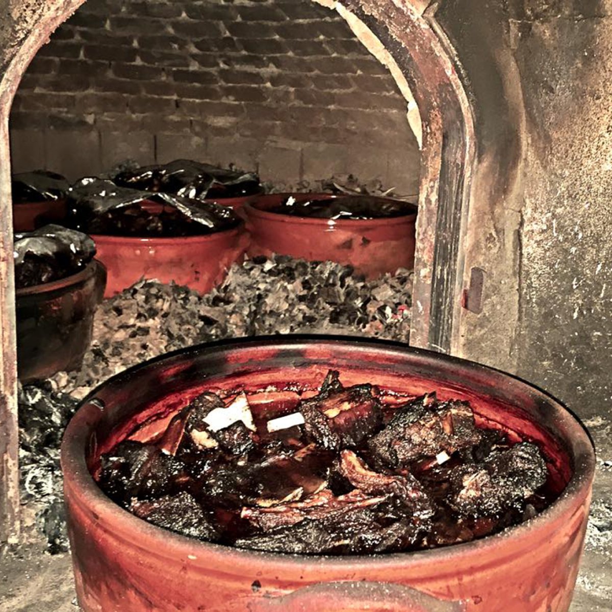 Passadas as cinco horas, os alguidares de barro passam para a mesa comprida, cobertos de alumínio, para descansar do calor. E ali ficam, se puder ser, 24 horas, porque aí é que a chanfana fica boa. E isso significa estar tomada dos temperos, daquele vinho escuro, e desfiar-se como se fosse seda. Irrepreensivelmente saborosa, a pedir reposição, uma e duas vezes.