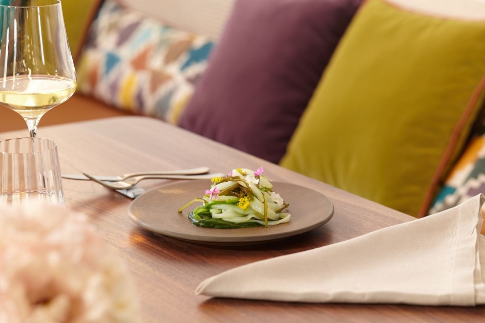 Cada uma das sugestões do menu “Especiais do Mês” (com valores unitários) faz-se acompanhar de uma sugestão de harmonização, à responsabilidade dos sommeliers Willian Botignon e David Rosa (head sommelier). A carta de vinhos, essa, inclui vinhos com pouca intervenção e outros mais clássicos, de várias regiões do país e alguns além-fronteiras, no total de mais de 100 referências entre vinhos tranquilos, fortificados, espumantes e champanhes.