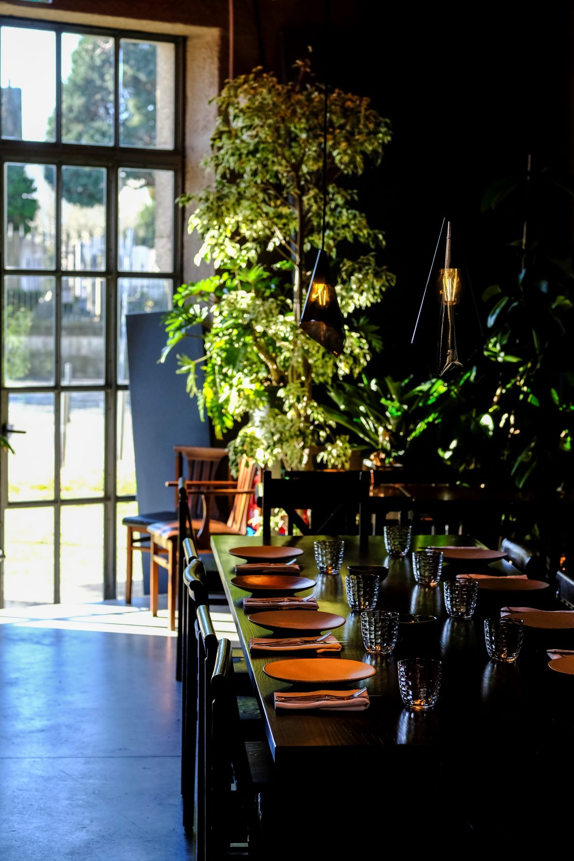 Aquela casa ampla, de estilo industrial, combina paredes cinza com neons vermelhos, plantas e, claro, mármores. São matérias-primas e esculturas da encarnação anterior, que viraram elementos decorativos – dos bustos da entrada aos tampos das mesas, cortados in loco. Houve muito trabalho “faça você mesmo”, conta Nuno Leal, um dos quatro sócios – os outros são Filipe Santos Teixeira (ex-proprietário do Plano B), Ricardo Costa (novo dono do Plano B e um dos proprietários do restaurante KUG), e o advogado Diogo Oliveira.