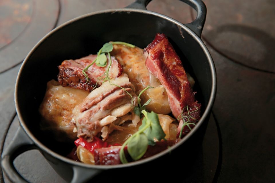 Na carta convivem pratos de inspiração síria, libanesa, grega e turca, tudo feito por ele. Bolinhos de bulgur com carne, mortadela caseira, frango cozido recheado e peixe-gato do Eufrates são alguns dos pratos à mesa na época festiva, e ainda estes dois que Sebouh preparou para a Evasões, um arroz com carne e frutos secos de origem otomana e kunefe, um doce feito com massa kadaif e nozes… e manteiga açoriana («a melhor de todas», diz Sebouh).