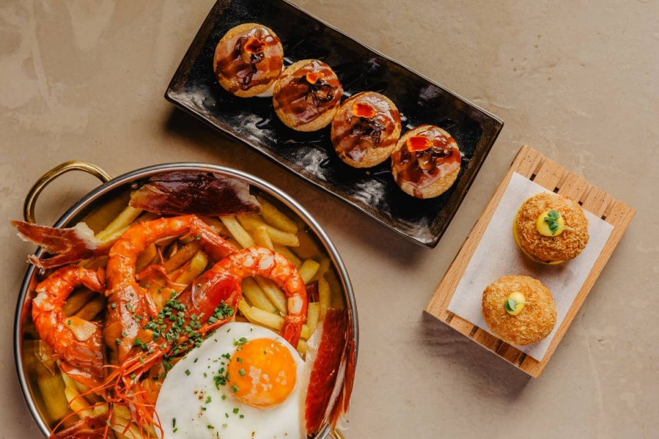 Também há croquete de camarão e carabineiro; pani-puri com creme de cebola, atum braseado e foie gras; carpaccio de gamba rosa com hóstias de camarão; e uns ovos rotos de carabineiro com batata palito, molho bisque, presunto Pata Negra e ovo mal estrelado a conferir gulodice à boa maneira ibérica. E enquanto, da tal montra, saem ostras da ria de Aveiro para entreter os convivas à mesa, há que escolher o modo de preparação mais adequado ao peixe vendido ao quilo. “Aqui, tentámos recuperar um pouco os clássicos peixe ao sal e peixe ao pão”, diz o chef.