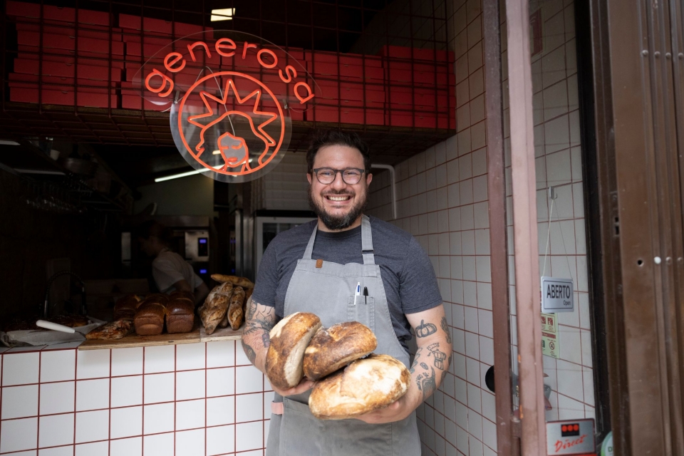 A ideia era “trazer algo diferente”, diz Jorge, brasileiro, o rosto mais visível da Generosa, que também se faz com o casal Gabriela Johann e Gustavo Schmidt, do vizinho bar de vinhos Genuíno, e com Filipe Teixeira, um dos mentores d’O Marmorista. Na Generosa, a “panificação [é] um pouco mais moderna, foge da padaria tradicional portuguesa, sobretudo para oferecer diferenciação e mostrar outra maneira de trabalhar os produtos”. Tanto o pão como a massa da piza fermentam durante longas horas e são produzidas com farinhas Paulino Horta. Este processo resulta em produtos como o pão da casa, com farinha de trigo branca e integral, a baguete, a focaccia, o brioche, os rolinhos de canela, os cannoli e as cookies de chocolate. Salvo algumas exceções, o elenco do menu vai variando semanalmente, o que permite apresentar novidades todas as semanas, devidamente publicadas no Instagram da marca.