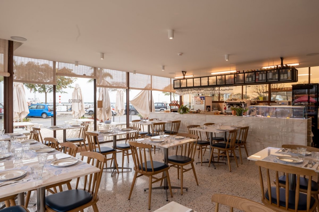Moderno, sim, mas não demasiado: quem entra no novo Peixoco, em frente à Doca dos Pescadores, pode escolher entre o peixe do dia na montra (ao quilo) e pedir para grelhar. Dali a pouco tempo, o prato chegará à mesa com batatas e legumes salteados. O compasso de espera é suficiente para experimentar alguns dos petiscos deste novo restaurante de peixe moderno, decorado em tons de azul.