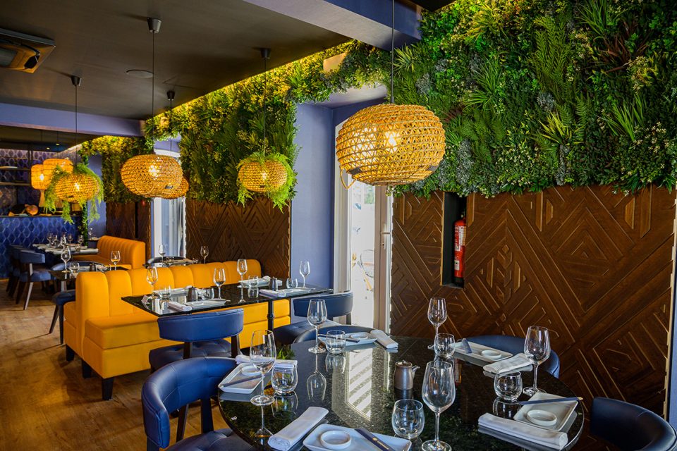 Os novos pratos, de sabor e estética apurados, casam com os tons da sala, também renovada com madeiras, longos jardins verticais e cor azul nas paredes. Com candeeiros a fazer lembrar a decoração de um destino exótico, a ideia foi “dar a sensação de que, mesmo no interior, os visitantes se encontram no exterior”, explica o Confraria Cascais. De resto, o restaurante destaca-se logo no exterior pelos toldos da esplanada, também ela acolhedora.
