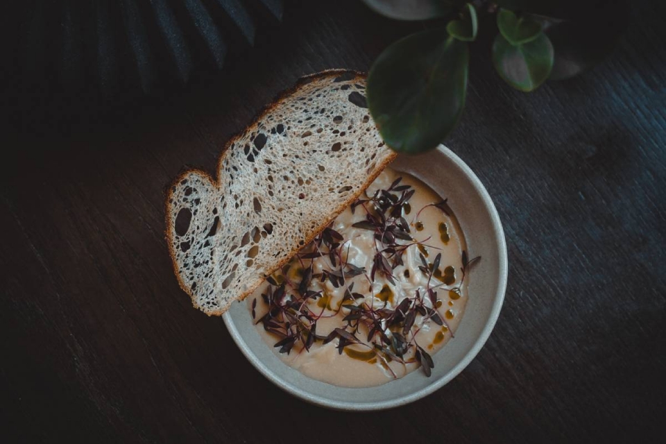 O couvert começa com pão de fermentação natural, brodo de shiitake fermentado, manteiga de trompeta negra e avelã e tapenade de azeitona com nibs de cacau, e a partir daí os cogumelos dominam. Enoki panados e batatas fritas com sal de cogumelos e natas azedas de rábano picante; gnocchi de queijo fresco, beurre blanc de vinho do Porto branco, ervilha e Cantharellus cibarius; e gelado de funcho com creme inglês de portobello fumado, como sobremesa, estão entre as criações disponíveis no menu. Em alternativa, há um prato de carne sem cogumelos.