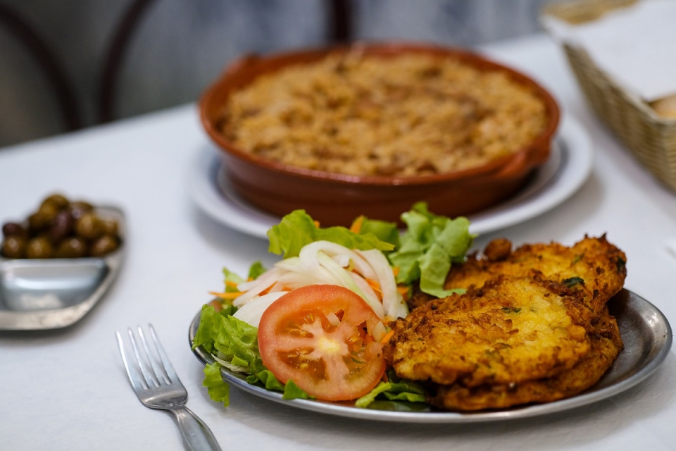 As pataniscas de bacalhau com arroz de feijão. (Fotografias: Gerardo Santos/GI)