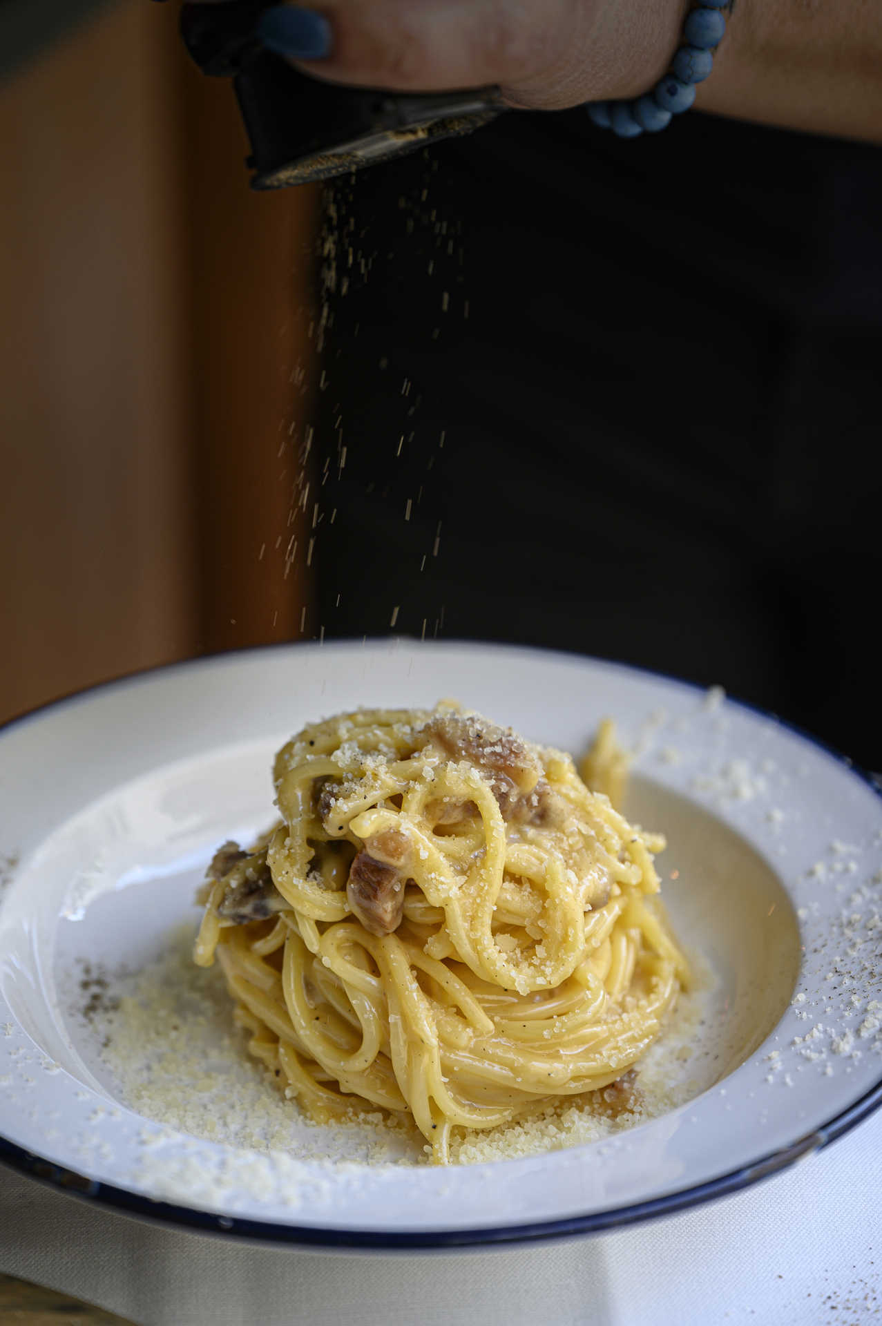 - Spaghetti alla carbonara em queijo pecorino. (Fotografia de Pedro Granadeiro/Global Imagens)