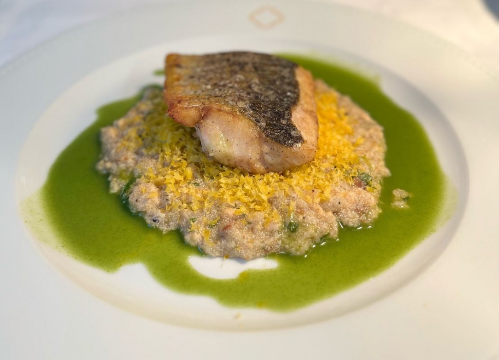 Numa vertente mais descontraída e leve – a pensar também nos hóspedes que, nos dias de calor, orbitam em redor da piscina -, a carta de almoço tem agora arroz de tamboril com respetivo fígado; pica-pau de veado; fraldinha com brioche e sunomono; e salada de tomate com coração de burrata e óleo de manjericão. Para fazer este prato, Mauro Álison vai à horta biológica do hotel, que lhe dá um pouco de tudo. “Ervas aromáticas, tomate, pimento, nabos, alho francês…”, exemplifica.