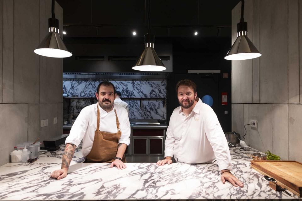 “Quando vim aqui pela primeira vez isto estava tudo submerso, tive que entrar de galochas, e lembro-me de perguntar, “Onde é que está a vista? Não há janelas?”, recorda o chef Vítor Matos. A ideia de imersão que sentiu nesse momento inspirou um dos menus que assina em conjunto com o chef Hugo Rocha. A dupla conduz a cozinha do Oculto sustentada numa relação de amizade com mais de uma década – Vítor Matos foi mentor de Hugo Rocha no início da sua carreira, na Casa da Calçada, e mais tarde voltaram a trabalhar juntos no Antiqvvm, onde Vítor Matos conquistou este ano a segunda estrela Michelin. Isto permite que o trabalho a quatro mãos flua naturalmente, complementando-se. “Somos amigos e pensamos de forma muito semelhante, temos essa vantagem”, reconhece Hugo Rocha.
