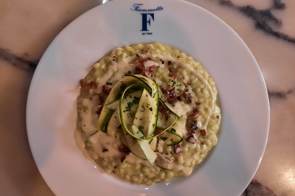 No capítulo das sobremesas, o Fiammetta traz à mesa o sgroppino, o equivalente a um sorbet, “mas mais líquido”, explica Ludovica, composto por gelado de limão e vodka. “É um pouco alcoólico, mas um ótimo digestivo e ajuda a deixar a boca com um sabor fresco”. Estes pratos vão manter-se disponíveis até ao mês de outubro.