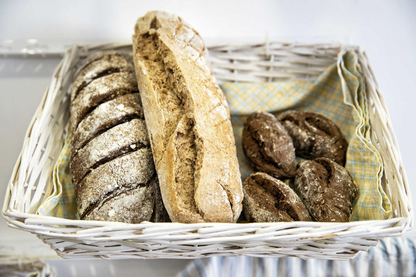 Todas as manhãs sai uma fornada de pão, cuja massa fica a levedar durante a noite. Há sempre uma mão cheia de variedades: pães doces, como o de abóbora e o de batata-doce – um dos preferidos, fofo e saboroso – e salgados, que incluem o clássico pão de água, o de centeio, alfarroba, trigo e milho, beterraba ou até espinafres. Pontualmente, os cestos ao balcão são reforçados com outra fornada à tarde, e aos sábados, o dia é inteiramente dedicado ao pão, pelo que há sempre mais variedades.