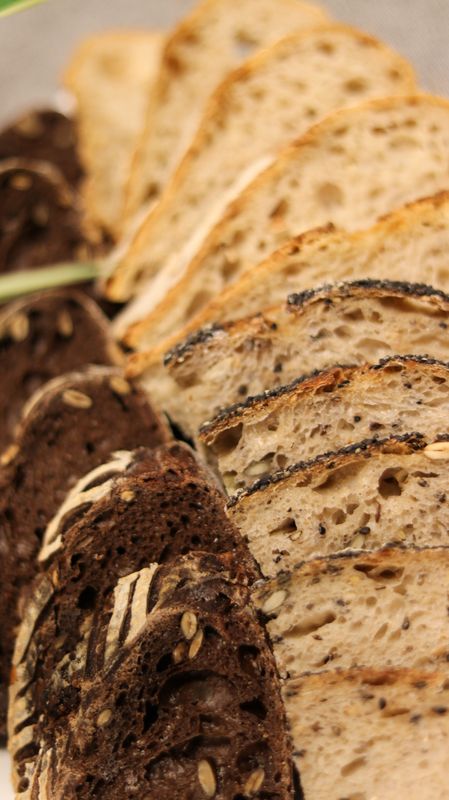 O catálogo de pães disponíveis (a preços a partir dos 4 euros) muda todas as semanas e é anunciado, ao domingo, nas páginas do Facebook e Instagram. Mas normalmente há sempre pão de mistura (trigo, centeio e aveia) com cereais de espelta e kamut; pão de sementes (feito com trigo, centeio, cevada); pão de alho assado e tomilho (feito com com trigo e espelta) e pão de azeitonas, orégãos e raspa de limão (com trigo e centeio), entre outros que vão resultando das experiências de Catarina.