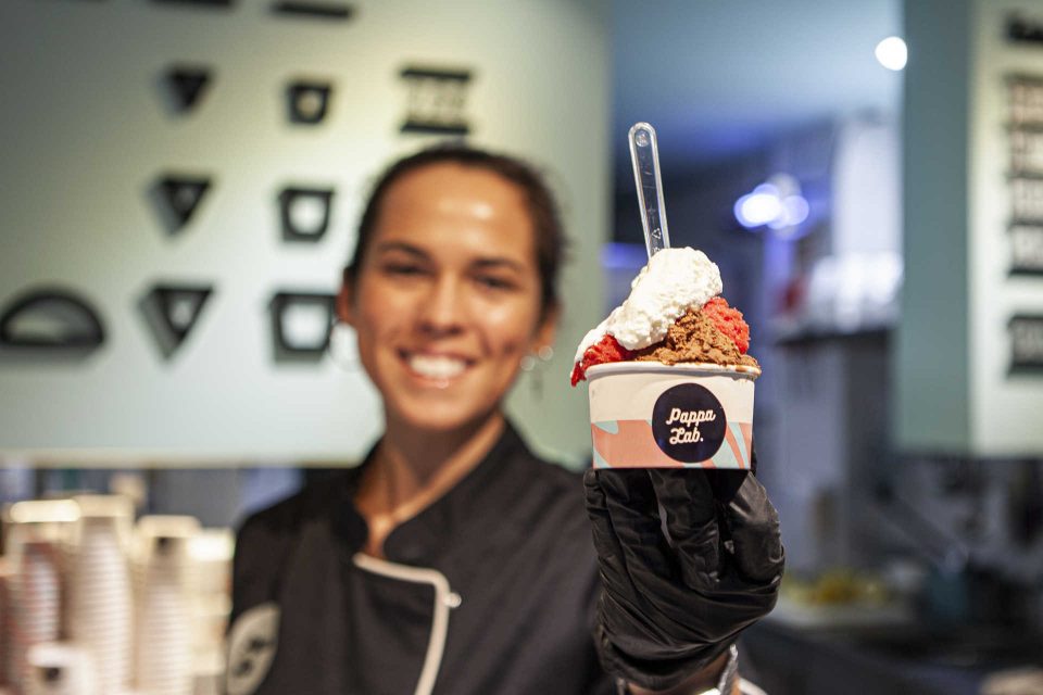Mas apesar da influência, quando decidiu criar o seu próprio projeto deu-lhe um cunho bem pessoal. Até o nome não foi deixado ao acaso: Pappa em homenagem às figuras paternas da sua vida e Lab, em referência ao laboratório de experiências do outro lado do balcão, onde cria novos sabores “de inspiração sazonal”, assume, todos eles ”sem corantes nem conservantes”. “Pode-se fazer gelado com tudo, por isso tento brincar um pouco”, conta.