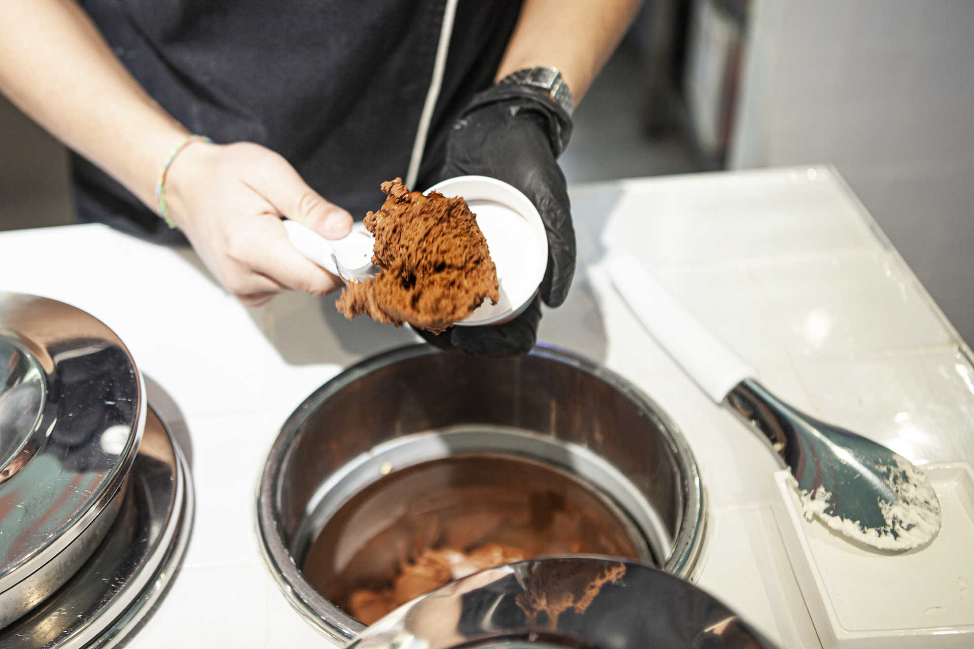 O serviço não é feito à bola mas antes por medida: existem três tamanhos de copo ou cone disponíveis, para encher com os gelados que se quiser provar.