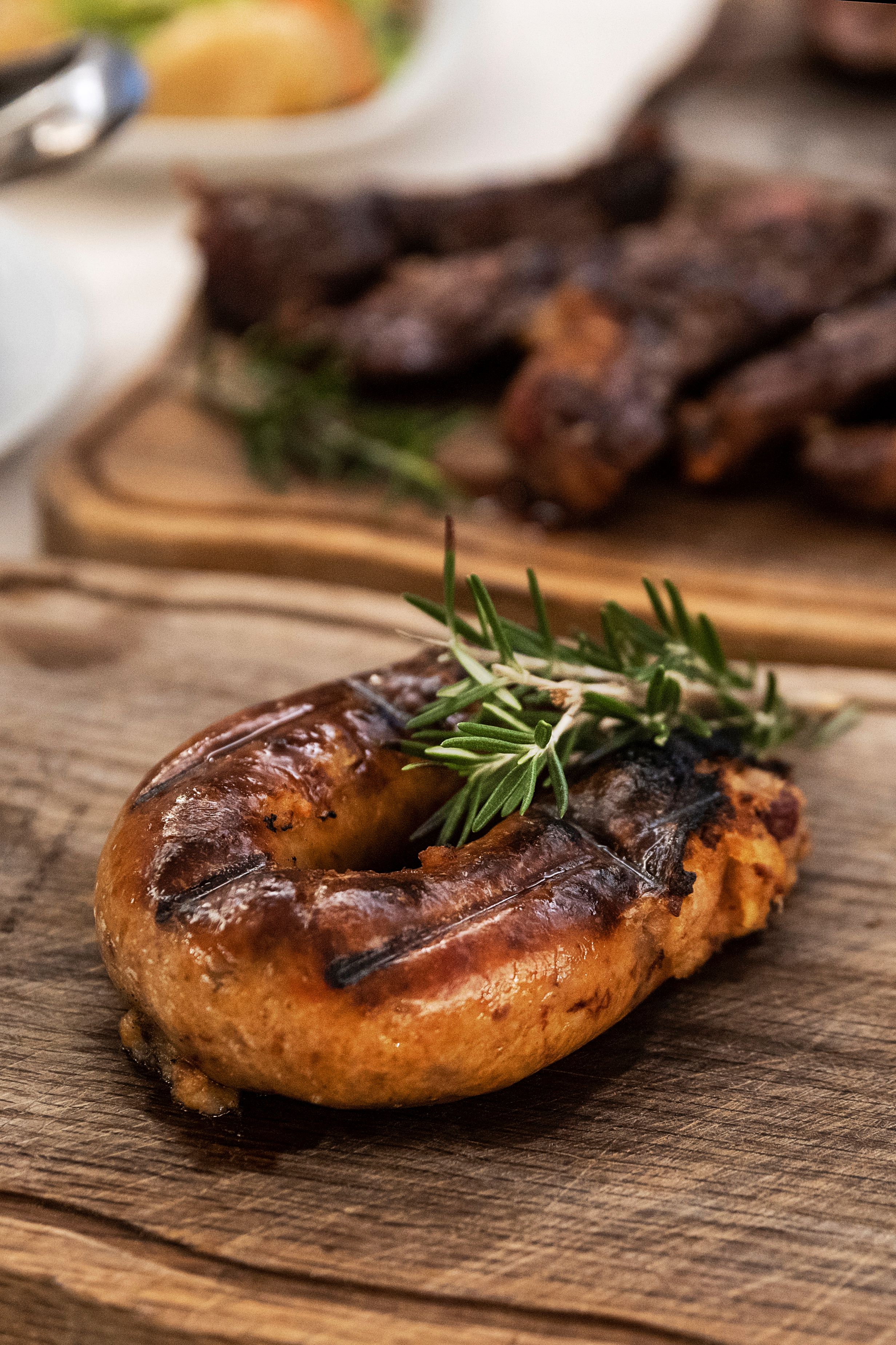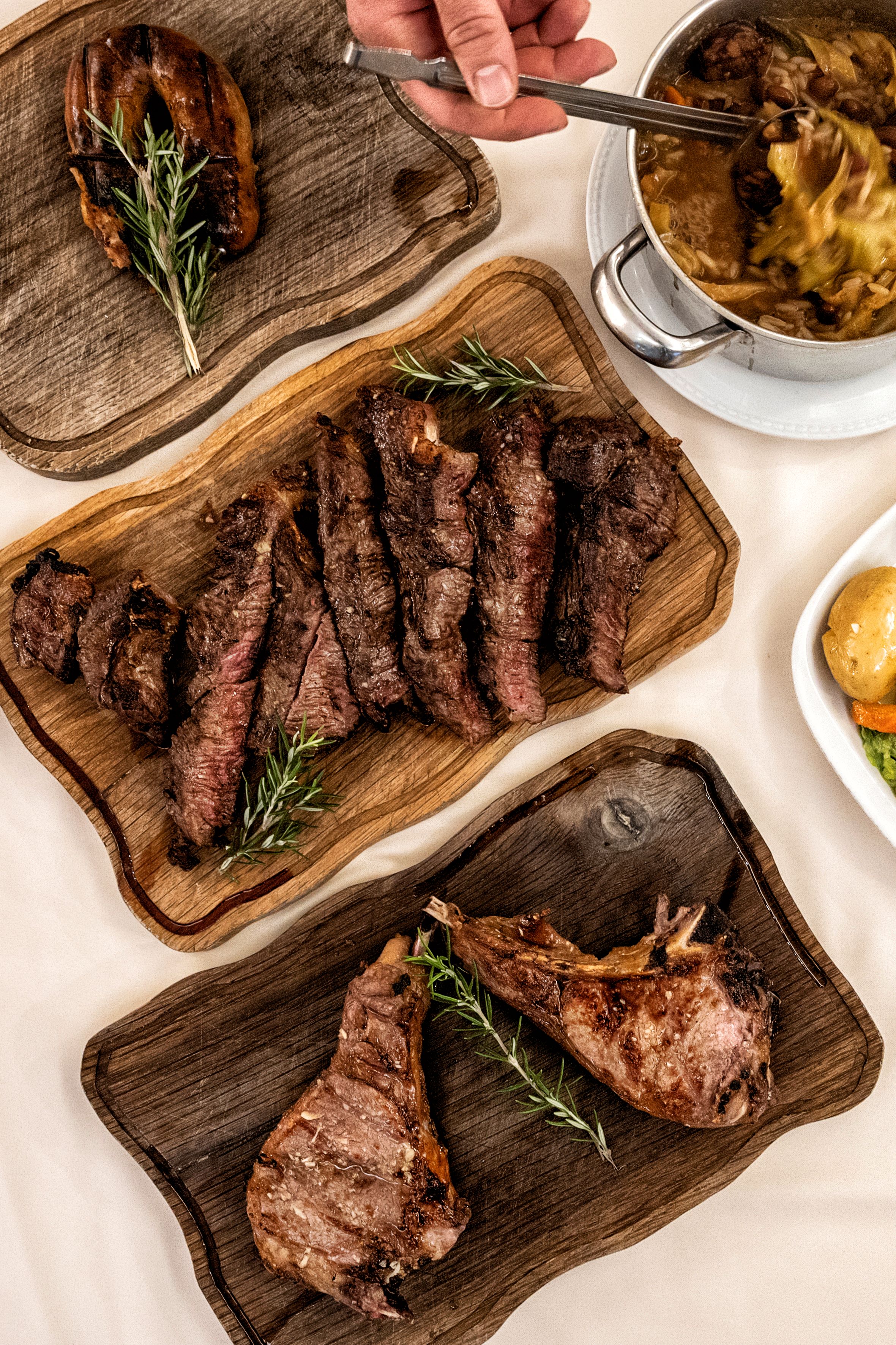 E ao comando dessa cozinha continua a mesma mão habilidosa, a da mãe, que ali faz brilhar as carnes arouquesas, em pratos como a posta servida com batata a murro, arroz de feijão e legumes salteados; e ainda o cabrito e a vitela assados (estes disponíveis ao domingo, ou por encomenda). A estes juntam-se as especialidades de outros restaurantes que a família já liderou, como o leitão à Bairrada, a picanha e o frango típico da Guia. “A minha mãe é o pilar, mestre da casa”, diz Sérgio, que assume o cargo de churrasqueiro.