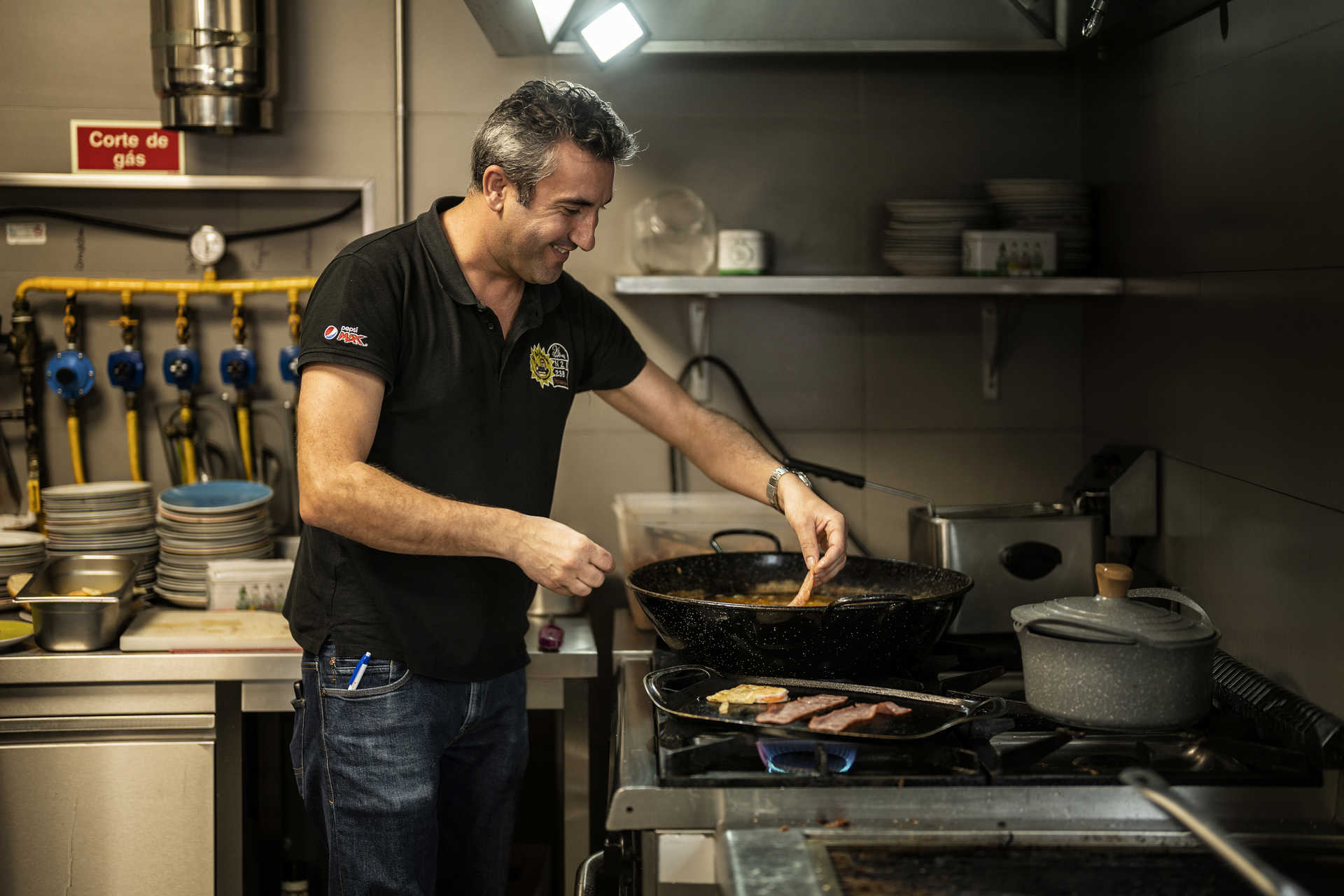 - Jó de volta das bifanas, na cozinha. (Fotografias de Maria João Gala/GI)