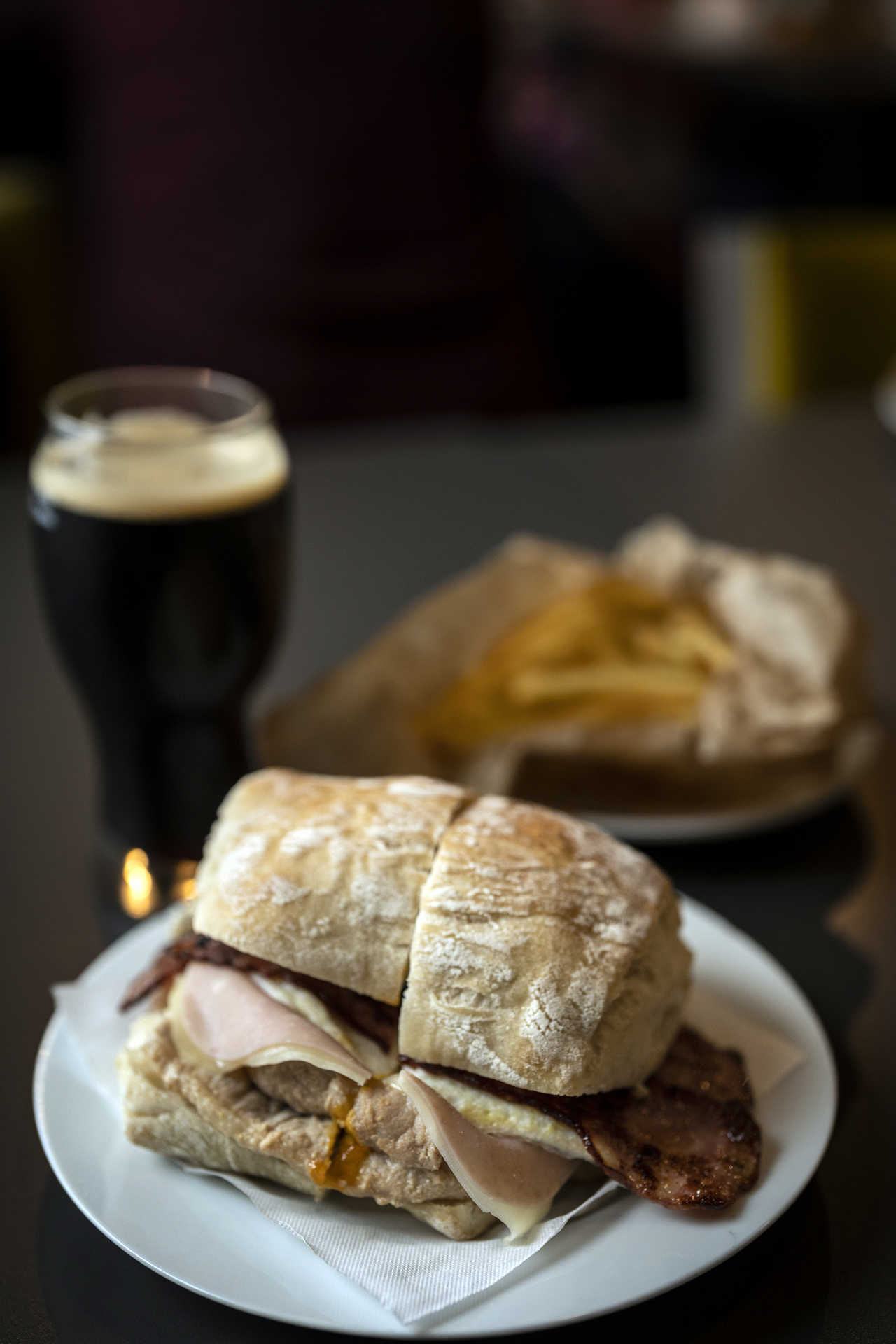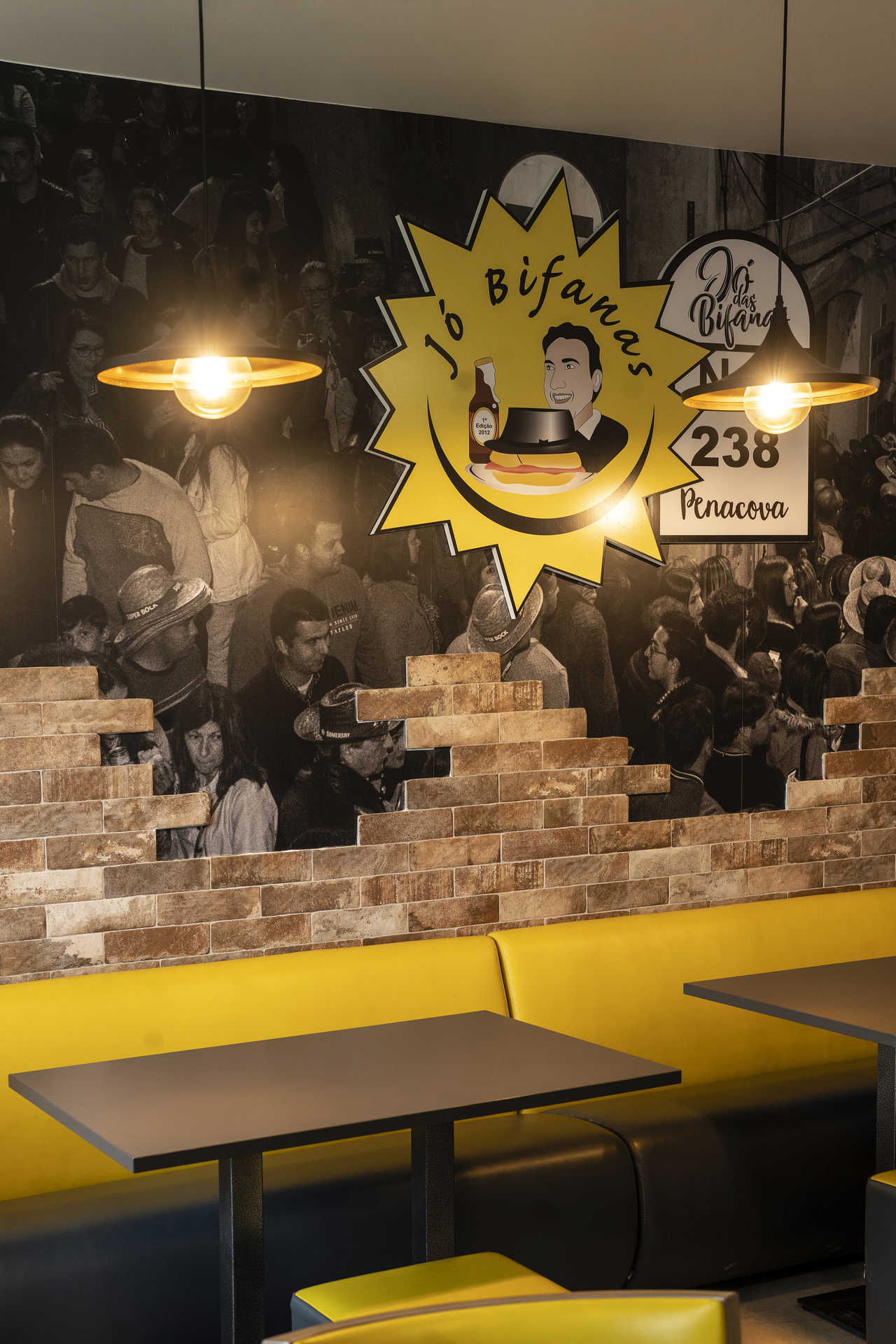 Com a pandemia – que obrigou à distribuição de bifanas ao domicílio -, deu-se a mudança para um espaço maior: este onde nos encontramos. Numa parede, há uma fotografia de uma rua cheia de gente, tirada naquilo a que se chamou, por brincadeira, “Confraria da Bifana do Jó”. Essa festa anual, com direito a DJ e rua fechada ao trânsito, leva mais de uma década de existência. Neste ano, acontece no dia 27 de abril, a partir das 18 horas e madrugada dentro, prometendo, além de bifanas, pastelaria tradicional, cerveja artesanal e gin.