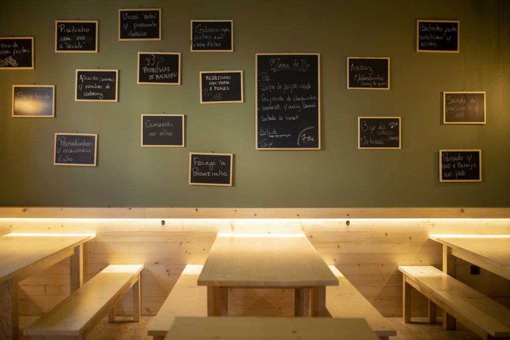 Nas ardósias penduradas numa das paredes pode ler-se alguns dos petiscos que ali se servem. «Já funcionou como ementa, mas entretanto a parede ficou pequena», ri-se Nelson.