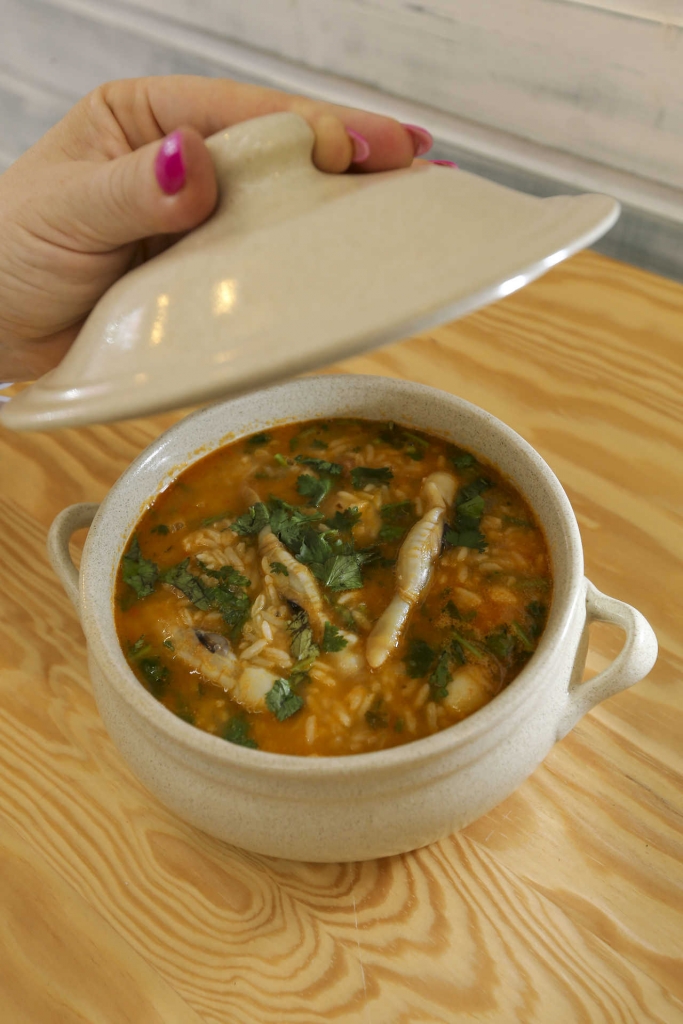 A expressão inspirou o nome, e aos poucos foram sendo introduzidas refeições até apostarem no marisco. Quem ali entra confirma a aposta tanto a olhar para a montra dele logo à entrada, como para a carta. Há amêijoas à Bulhão Pato, camarão cozido, camarão ao alho, santola recheada e respetivas patas e gambas ao alho. Da cozinha saem também pimentos recheados com sapateira, como entrada, e arroz de lingueirão, como especialidade nos pratos principais.
