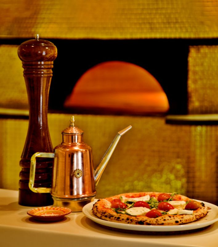 O restaurante Forno d’Oro, aberto na zona das Amoreiras em 2015, deve o nome ao forno a lenha que foi construído propositadamente no local e forrado a folha de ouro. É nele que são cozidas as pizas de estilo napolitano, de massa fina e leve, e que são acompanhadas de uma carta com mais de 35 cervejas artesanais. A sala, com projeto de arquitetura e decoração de Cristina Santos e Silva, tem um ambiente sóbrio e elegante.
