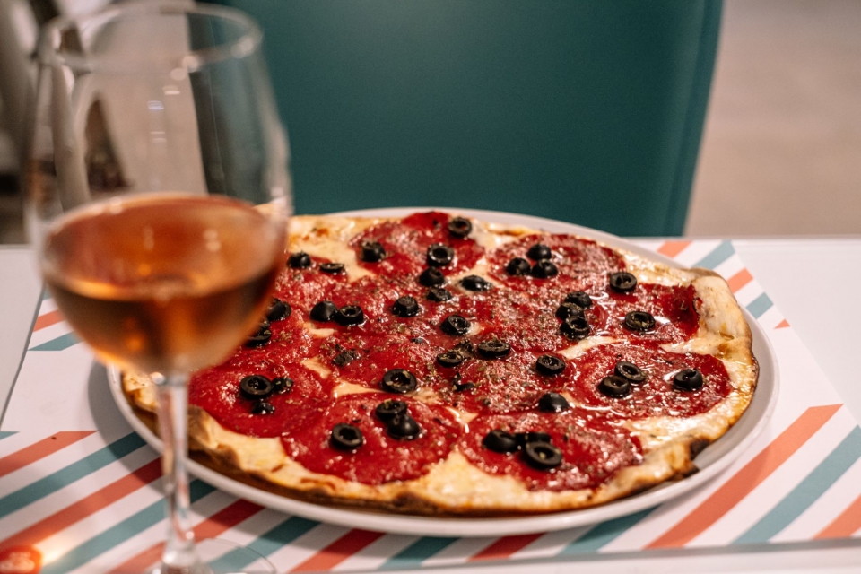 As estrelas da carta são as pizas artesanais, de massa fina e estaladiça, criadas pelo chef executivo do Vila Galé, Francisco Ferreira. Destacam-se combinações como a Massa Fina, que à base de molho de tomate acrescenta bacon, cebola caramelizada, mozarela e orégãos; a Inevitável, feita com salame picante e azeitona; a Vínica, composta por bolonhesa, pimentos e redução de vinho Santa Vitória; ou a Calzone Sensação, recheada com salame picante, fiambre e ovo. Há também opções vegetarianas como a pizza 4 Queijos ou a Fresca, que leva tomate cherry, mozarela de búfala e orégãos. E todas estão disponíveis para take away.