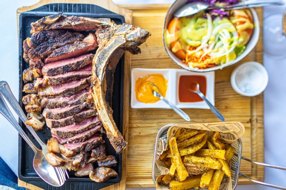 A atenção à boa apresentação da comida é transversal. O costeletão maturado, para duas pessoas, servido com batata frita rústica (com casca e ervas), salada e molhos, convence até quem não aprecia carnes vermelhas. Pela forma como é servido e pelo sabor. Uma das preocupações de Ricardo é que a casa, situada numa vila do interior, afastada dos roteiros turísticos mais frequentados, possa ser opção muito para lá da churrasqueira tradicional. “Numa mesa com uma família, temos pratos para todos os gostos.”