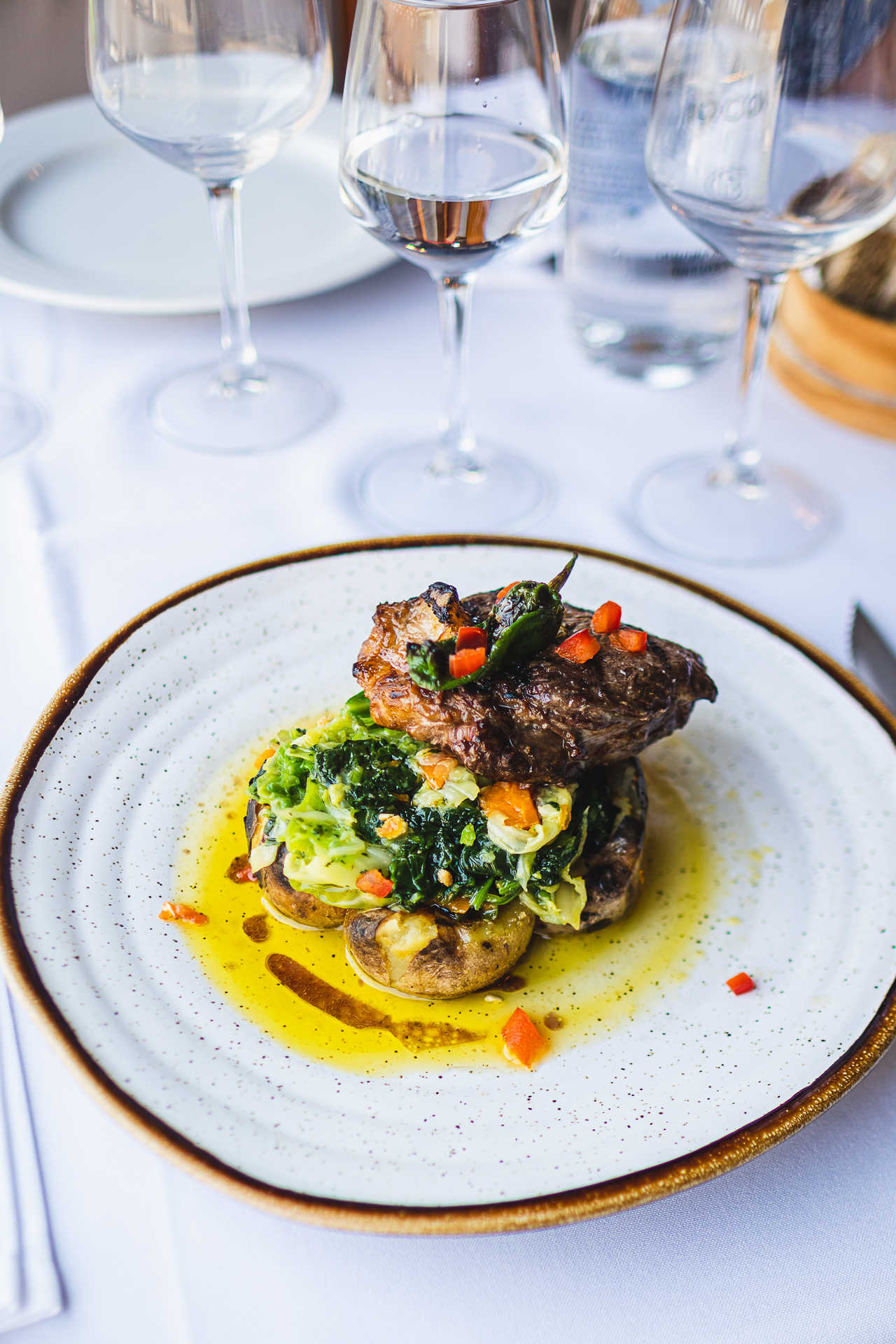 Os pratos grelhados que ditaram o sucesso do negócio do pai continuam na carta, mas levaram um tratamento de modernidade e são apresentados com toque refinado. O mesmo acontece com as propostas do menu executivo, servido de segunda-feira a sexta, com opção de carne e peixe. Caso do esmerado e apelativo empratamento de uma posta de vitela, com batata a murro e grelos, digna de constar na carta principal.