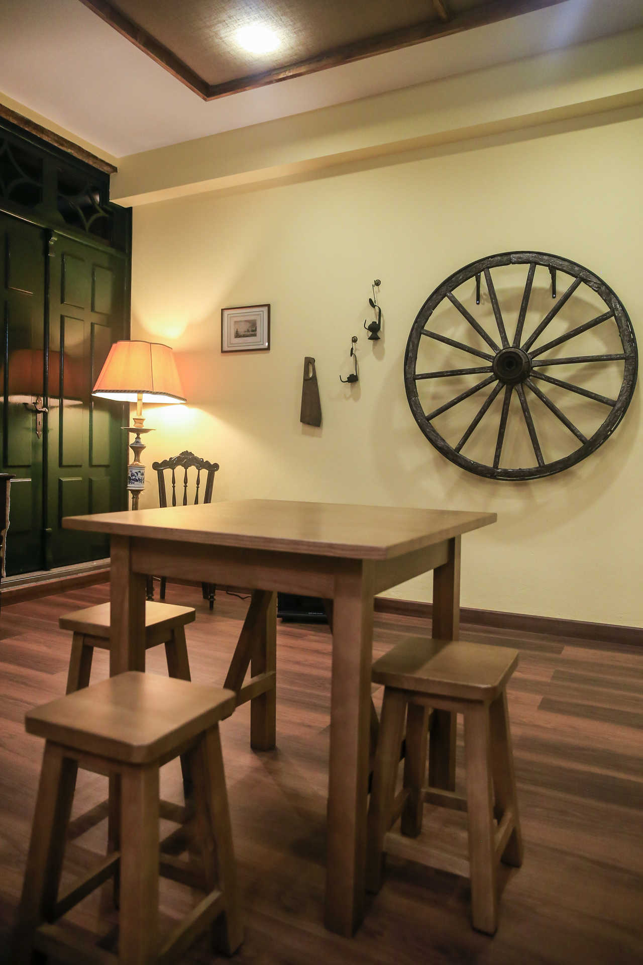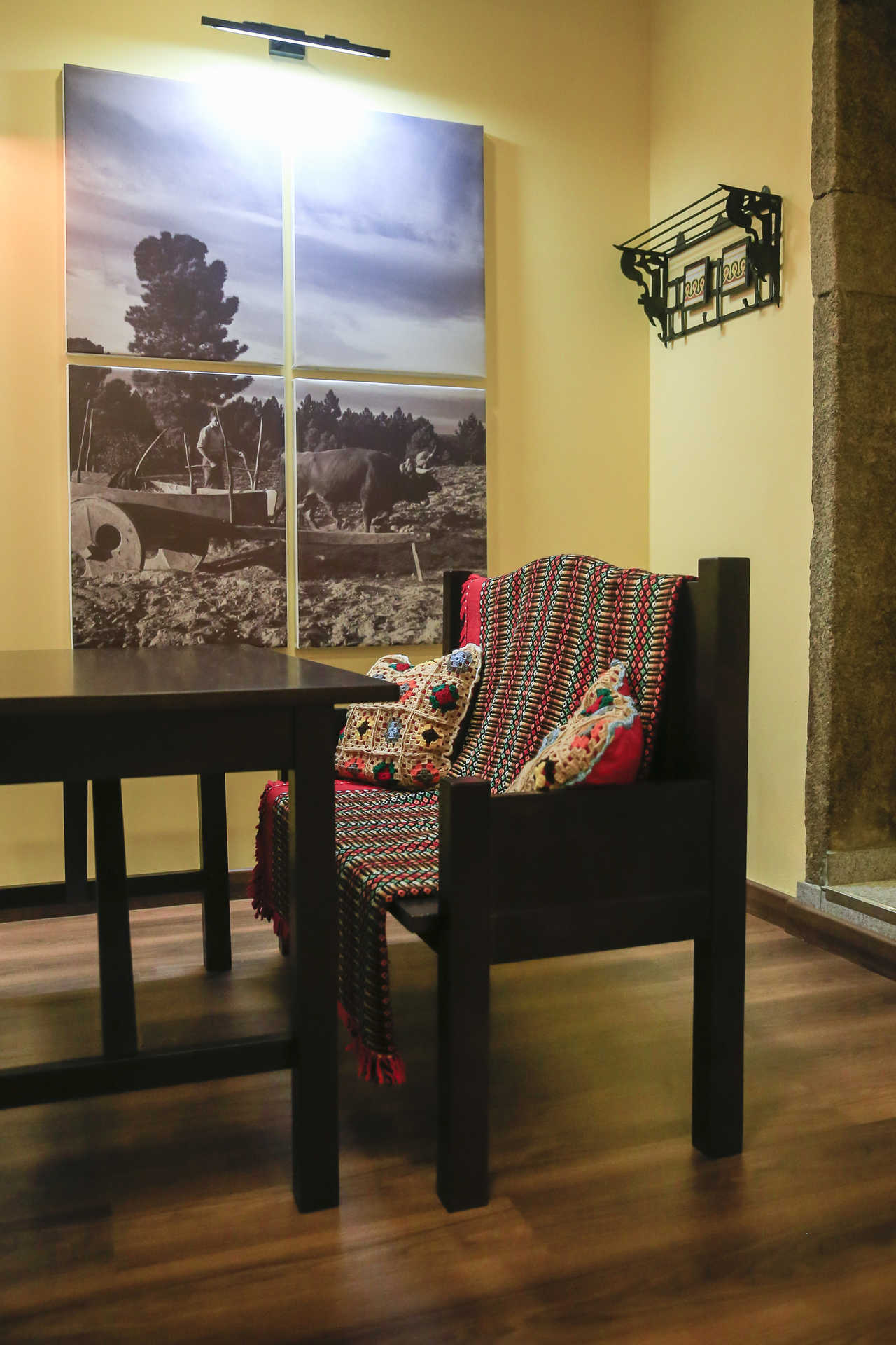Na sala de refeições, com cerca de 20 lugares, são servidos petiscos e tostas de cogumelos, azeite, tomate seco e rúcula; ou de alheira, queijo e tomate desidratado, entre outras. E, para acompanhar, vinhos, chás ou infusões. O amarelo das paredes torna ainda mais acolhedor o espaço, elegantemente decorado com elementos que remetem para o mundo rural, como louças, mantas ou uma roda de carroça.