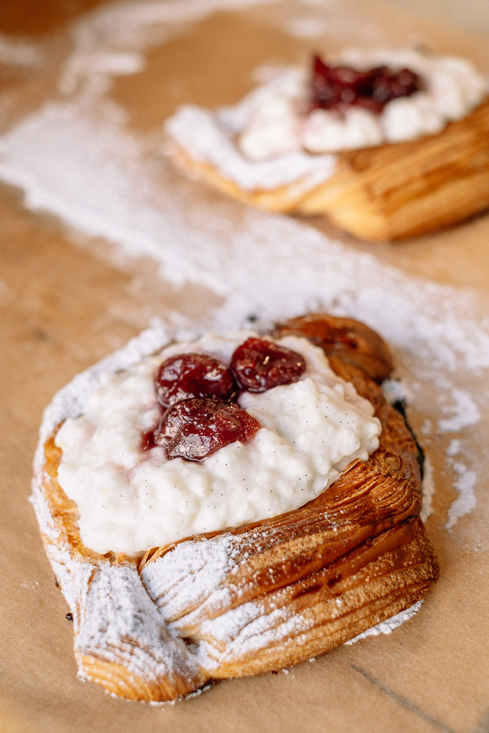 Outra aposta é a pastelaria confecionada com ovos de galinhas criadas ao ar livre e manteiga francesa. A oferta costuma incluir croissants folhados, pain au chocolat, pão suíço, danish (doce à base de massa folhada, com recheio), challah, pain aux raisins e brioche de azeite. Esta última receita (vegan) foi trazida por Gil, o chef de padaria, de uma temporada na Provença em que foi formador da École Internationale de Boulangerie.